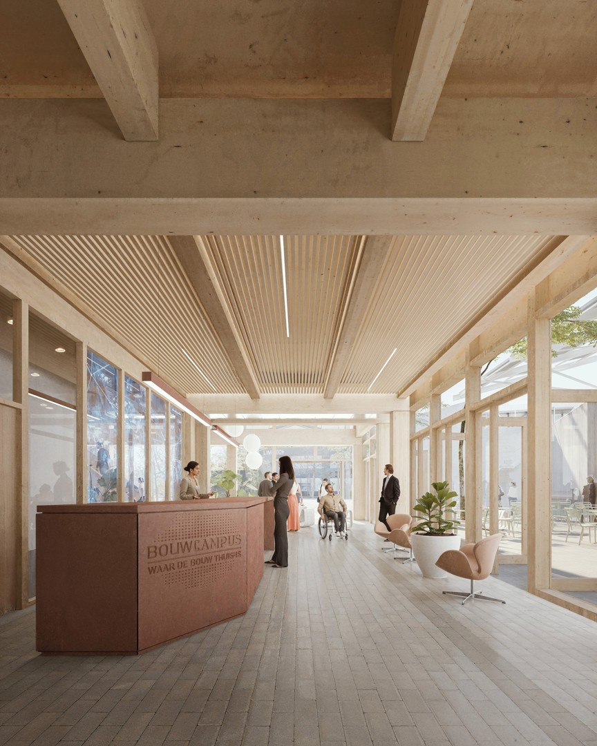 Outre le bois pour la structure, le plus grand nombre possible de matériaux de construction biosourcés seront utilisés dans la construction du Bouwcampus 2.0, comme la chaux, le chanvre et le plâtre d'argile, entre autres.