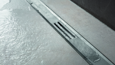 Avec leur évacuation linéaire, les rigoles de douche « Advantix » de Viega offrent une option résolument design pour l'aménagement des douches de plain-pied. Installées devant le mur, elles confèrent par exemple un effet de surface continue au sol carrelé de la douche grâce auquel n'importe quelle salle de bains paraît plus vaste et plus spacieuse. La nouvelle rigole de douche « Advantix Cleviva » allie ces possibilités d'aménagement aux avantages en matière d'installation d'une évacuation ponctuelle : contrairement aux rigoles de douche actuelles, « Advantix Cleviva » permet d'acheminer l'eau sur un fin profilé en acier inoxydable avec une pente très design jusqu'à un siphon de sol central, doté d'une natte d'étanchéité à l'usine. De cette façon, l'installation de la rigole de douche et son intégration dans l'étanchéité composite deviennent nettement plus sûres et plus efficaces.