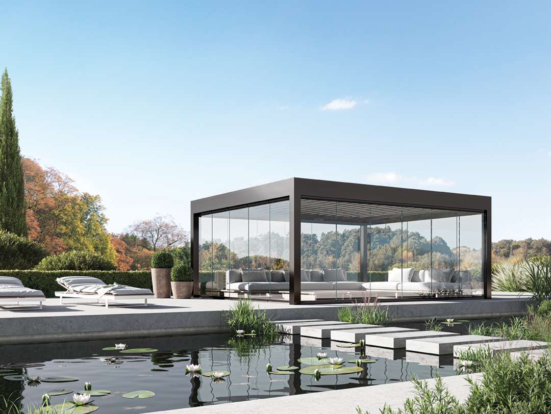 Aliplast présente à Batibouw une pergola bioclimatique de 8 mètres