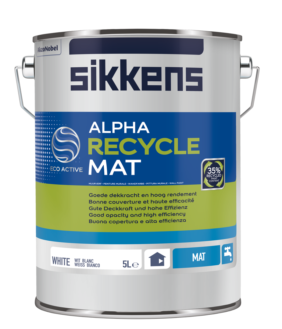 Le lancement d'Alpha Recycle Mat s'inscrit dans le cadre des objectifs écologiques plus larges et du caractère innovant d'AkzoNobel. Le groupe international figure depuis de nombreuses années en tête du Dow Jones Sustainability Index pour les entreprises chimiques et vise à atteindre la neutralité carbone d'ici 2050 – un objectif très ambitieux dans le secteur chimique. Pour la marque Sikkens aussi, durabilité et qualité vont de pair depuis de nombreuses années, comme en témoignent – entre autres – le développement et la fabrication de peintures à base d'eau avec peu de solvants et la réutilisation des eaux de rinçage. En collaboration avec un certain nombre de déchetteries en Belgique, AkzoNobel encourage également déjà la réutilisation des résidus de peintures colorées par les friperies et les associations caritatives via le projet Repaint.