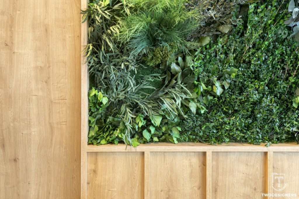 Une sélection de matériaux en bois et en feutre permet d’installer une ambiance chaleureuse au sein des installations. Des murs végétaux ont été érigés pour laisser à la nature le loisir de s’inviter à l’intérieur. Sur les portes, les plaques signalétiques sont en bois réinjecté. Enfin, une ambiance studieuse mais à la fois détendue se dégage par des animations typographiques ludiques et colorées sur le thème de l’apprentissage. Au menu des marques utilisées, on retrouve entre autres : Hay et Pedrali pour les chaises et tabourets, Muuto pour les luminaires ou encore Frezza pour le mobilier de bureau.
