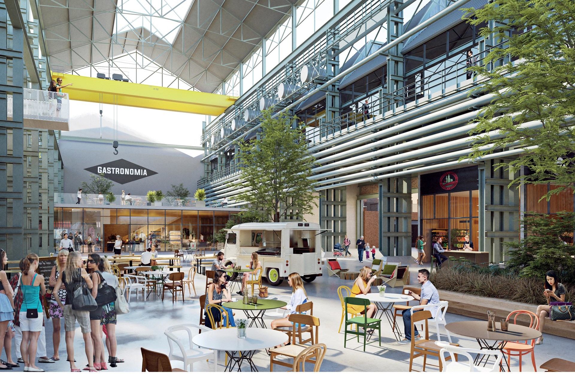 Gastronomia, c’est ce vaste projet bâti sur les anciennes halles industrielles et bicentenaires Cockerill, qui vise à redynamiser le centre-ville de Seraing. À terme, le site proposera des commerces, des appartements, un food court, une zone polyvalente pour divers événements ainsi que des espaces de travail.
