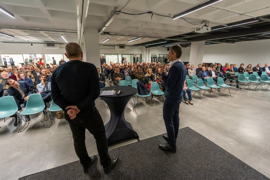 c’est au ADAM - Brussels Design Museum que Mister Emma avait convié la foule. Entre 200 et 300 personnes étaient présentes à cette occasion, preuve qu'Archi Urbain a su toucher les Bruxellois. Dans le public, on pouvait reconnaître de nombreuses figures de l'architecture, comme Willem Jan Neutelings, Julien De Smedt, Philémon Wachtelaer, Steven Beckers, Francis Metzger, ... ainsi que le bouwmeester en fonction Kristiaan Borret.