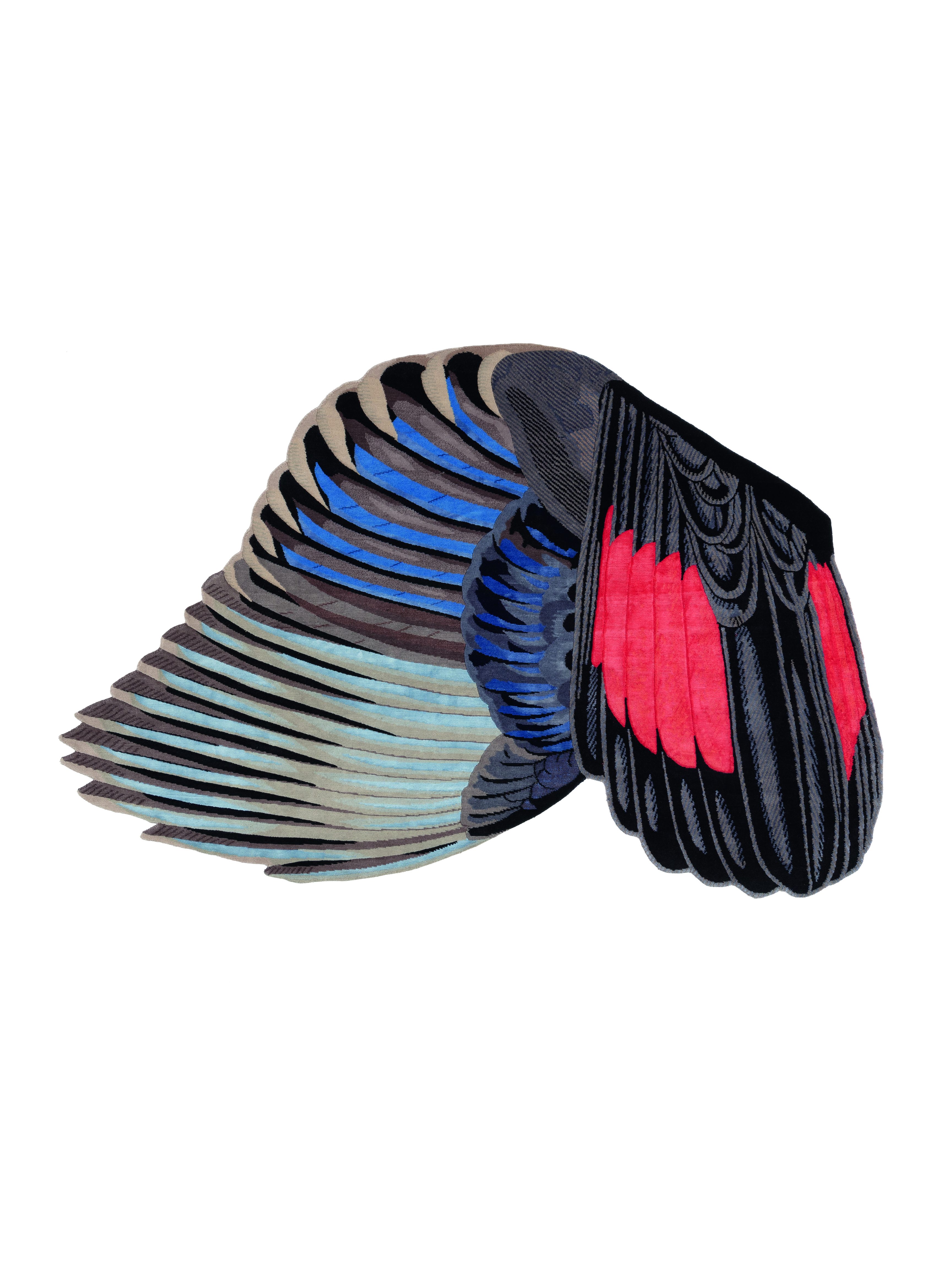 La collection se base donc sur des oiseaux confectionnés numériquement. Maarten De Ceulaer a numérisé, découpé et combiné plusieurs oiseaux pour chaque image. Les différentes formes, couleurs et textures ont été réarrangées par lui, ce qui a créé une image abstraite. Grâce à la collaboration avec l'entreprise italienne CC-Tapis, les collages ont été traduits en tapis de laine et de soie, fabriqués à la main. Les différences de niveaux créent une impression de profondeur en soulignant les formes des plumes.