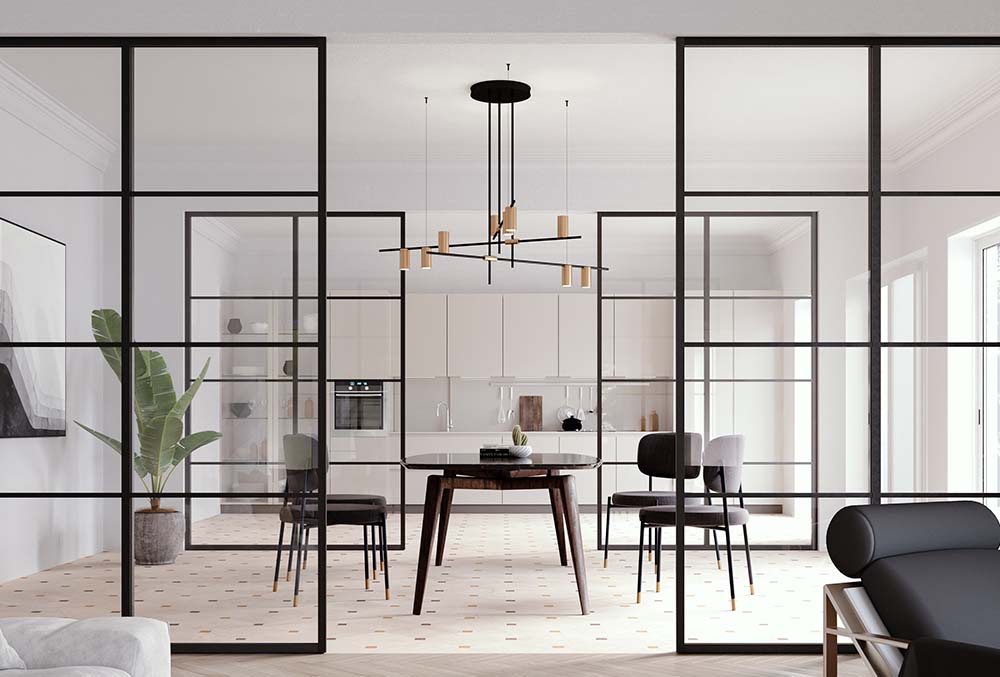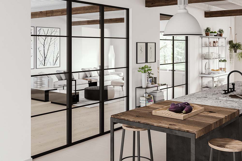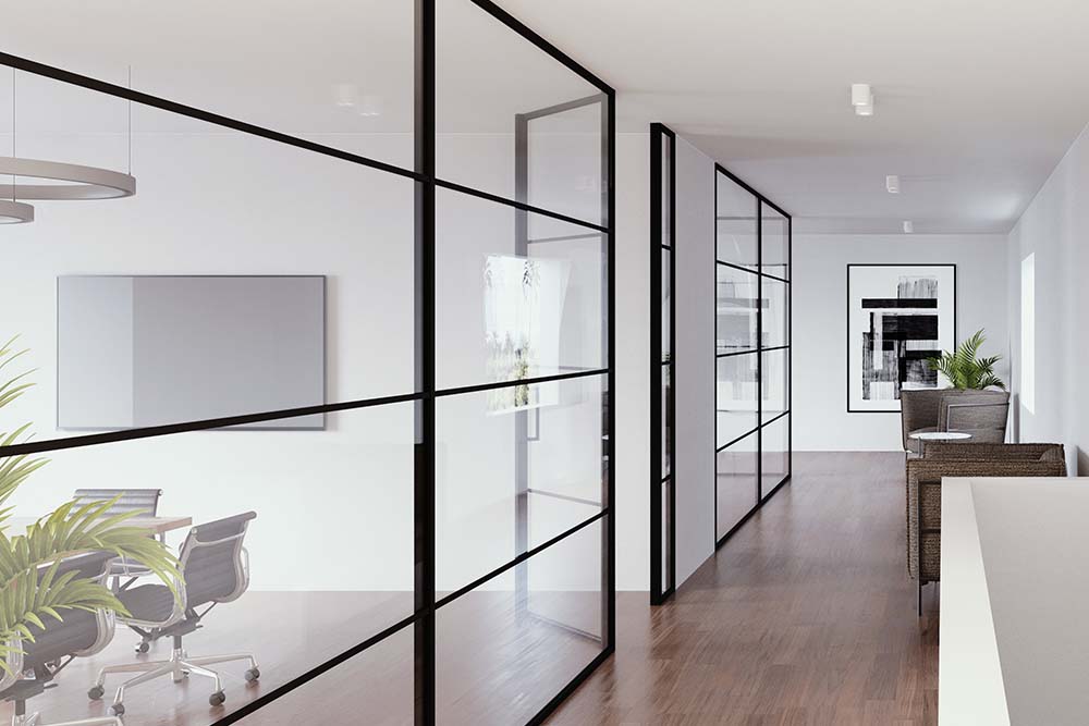 Les murs intérieurs vitrés, c’est « chaud », mais cela devient vraiment pratique quand on peut les combiner comme bon nous semble : les monter horizontalement ou verticalement, les équiper de n’importe quelle épaisseur de verre, y encastrer ou non une porte en verre.