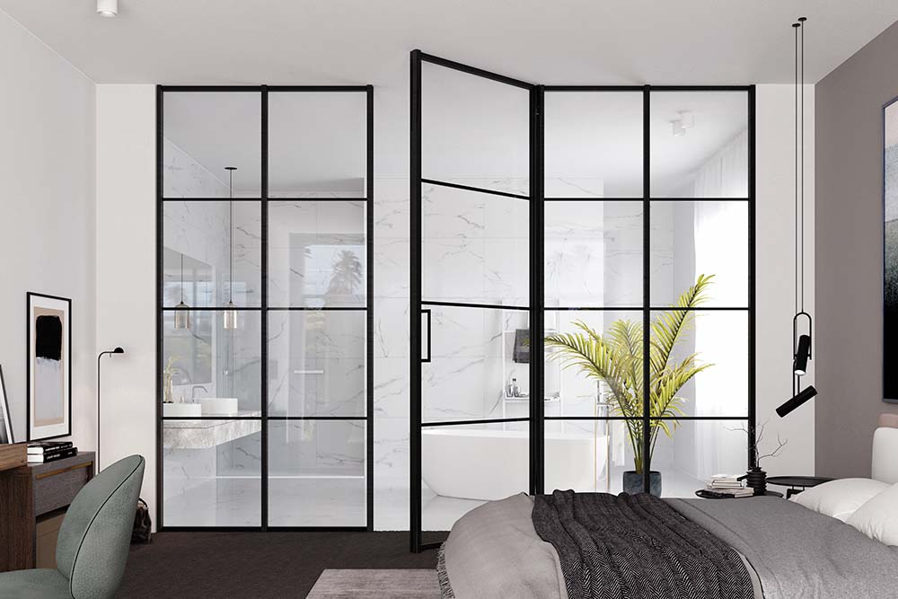 Mais Divina – qui a d'ailleurs remporté le Red Dot Product Design Award en 2022 – va plus loin que les solutions existantes en matière de murs intérieurs vitrés : elle offre la possibilité d’intégrer une porte toute hauteur jusqu’à 2600 mm, munie de charnières encastrées invisibles Tyo, qui ne viennent donc pas perturber le design épuré des profils. Une première sur le marché des murs et des portes en ‘look acier’. Qui plus est, la serrure magnétique Argenta Magnotica Pro, qui est également dissimulée dans le profil et reste même invisible lorsque la porte est ouverte, rend tout mécanisme de verrouillage superflu. Enfin, le mécanisme d’étanchéité placé entre la porte et le mur rend l’affaiblissement acoustique meilleur et garantit une meilleure isolation par rapport aux portes pivotantes.