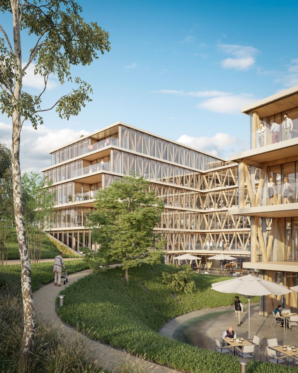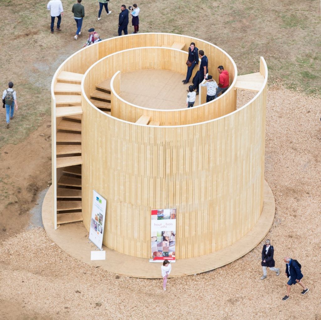 A Paris, le Museum d'Histoire naturelle n'a pas été choisi au hasard. Ce lieu, ainsi que le choix des orateurs, correspond à l'engagement des associés d'ARt&Build en faveur de l'environnement et de la biodiversité. Côté français, le bureau est ainsi l'un des initiateurs du manifeste "Architects declare" prônant l'urgence climatique et environnentale, et a signé également sa version belge. Cet engagement se traduit notamment en recherche et développement, puis sur le terrain, faisant d'Art&Build un pionnier en construction bois dans des projets de grande ampleur. Citons par exemple la tour Silva à Bordeaux (avec Studio Bellecour), haute de 50 mètres pour 17 étages. Ou le futur siège d'Engie dans un campus de 136 000 mètres carrés en grande partie en bois (avec SCAU Architecture et Chaix & Morel & Associés). Ou encore l'Odyssée, le nouveau technocentre de Renault dans les Yvelines. Un projet presque 100% en bois, puisque même les cages d'escaliers et d'ascenseurs seront en bois ! Les grandes entreprises décarbonisent à tour de bras et Art&Build est là pour les y aider. Avec l'extension de l'Institut Marie Curie au coeur du 5e arrondissement de Paris (en association avec A26 architectures, BG ingénieurs cnseil, Vanguard et Tisseyre), le bois fait même son entrée dans le secteur de la santé. On le constate, tous ces projets sont situés en France, où la construction bois bénéficie de l'impulsion donnée par les pouvoirs publics (locaux). Exception porteuse d'espoir, qui pourrait faire office de vitrine pour la construction bois dans le Benelux; la réalisation de "Wooden" : 10 000 mètres carrés d'immeubles de bureaux en construction bois à Leudelange, au Grand-Duché. Début du chantier en 2020.