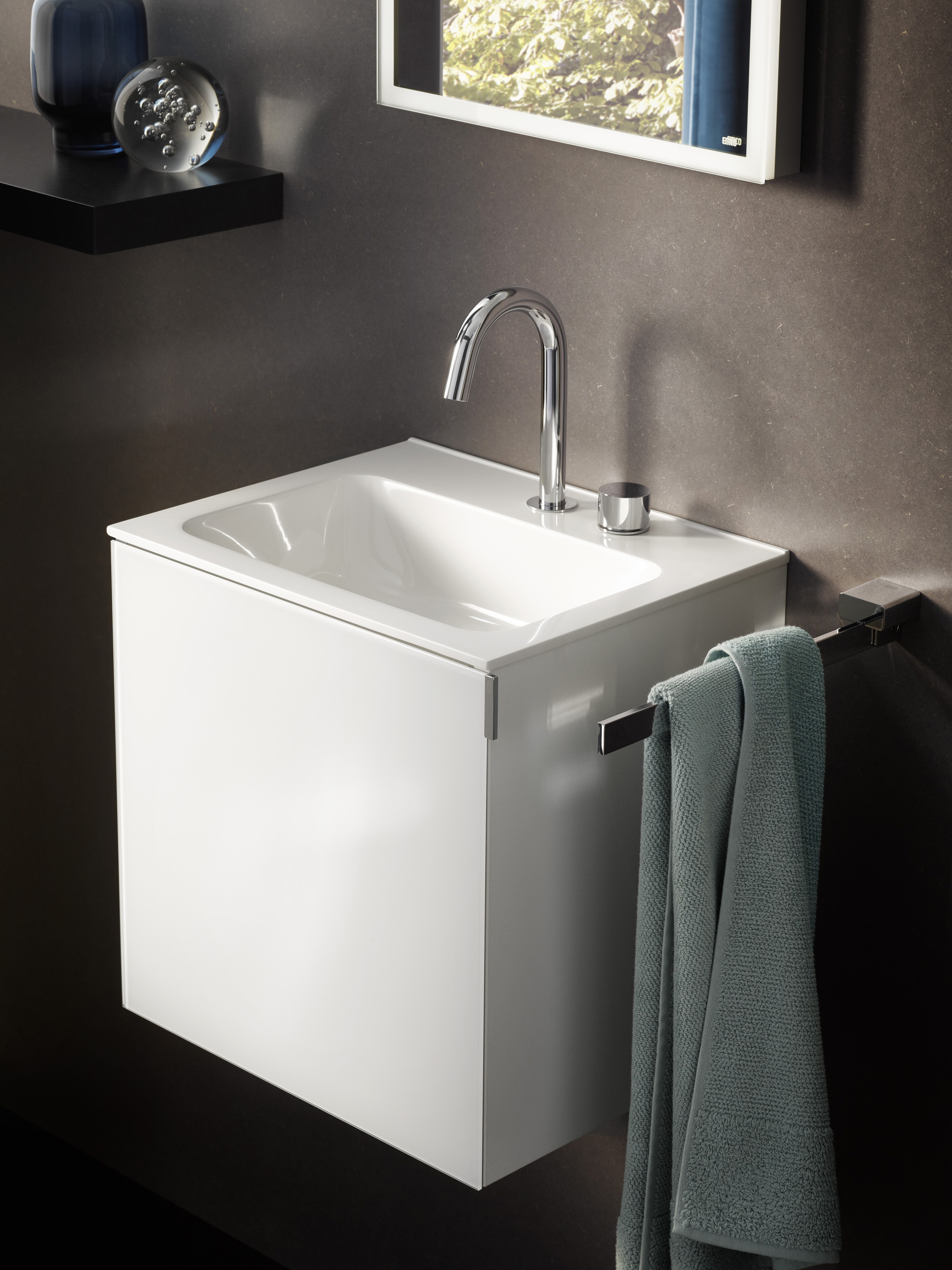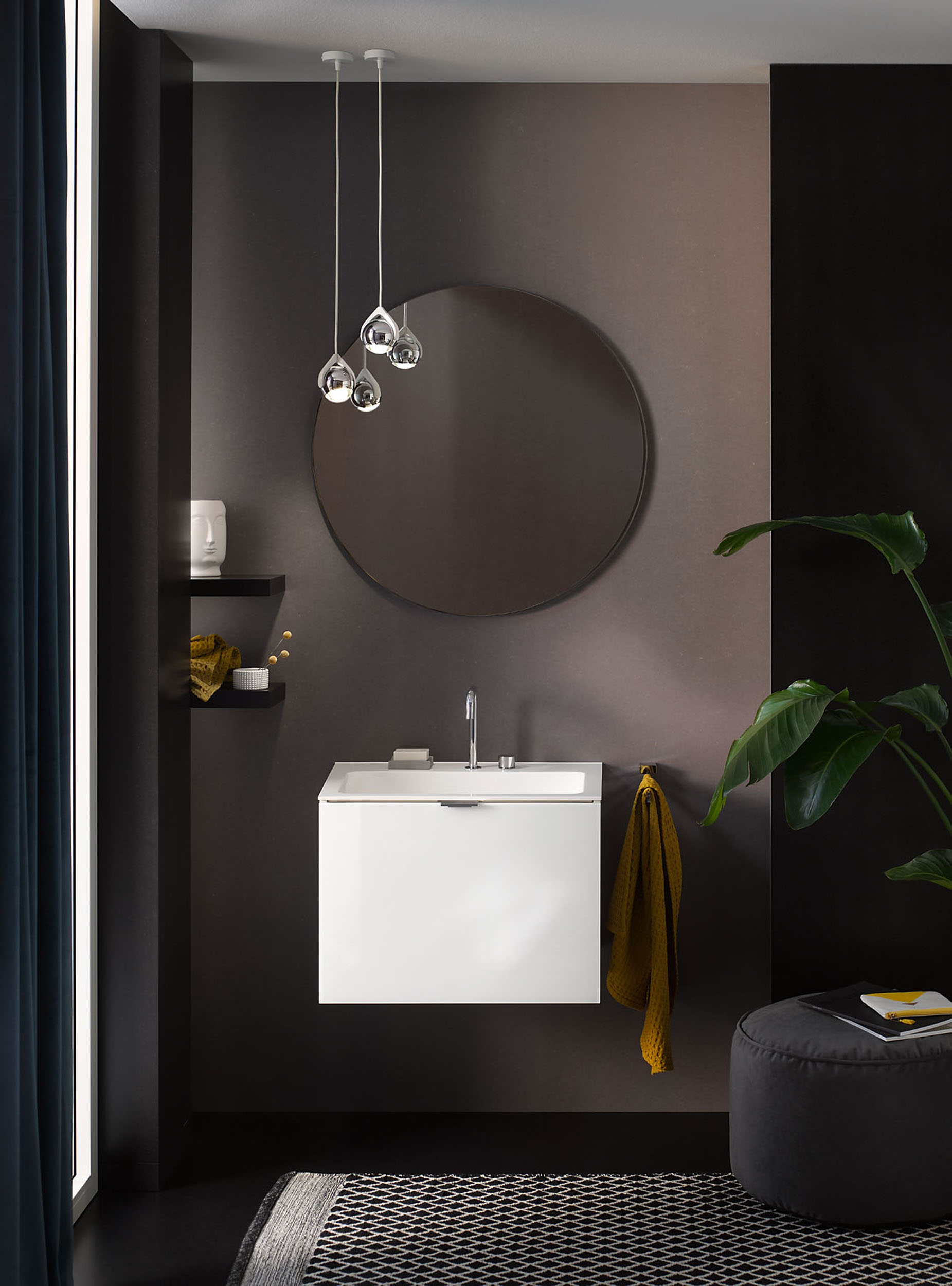 Pour les toilettes et les salles de bains modernes, emco Bad présente une nouvelle série de lavabos épurés avec armoire intégrée. Ces armoires, disponibles en deux couleurs, peuvent être utilisées individuellement mais aussi en combinaison avec les modules emco Asis, car les couleurs y sont harmonieusement assorties. Grâce à ses différentes dimensions, le meuble lavabo peut s'intégrer dans n'importe quel projet. Et emco propose également des luminaires totalement adaptés.