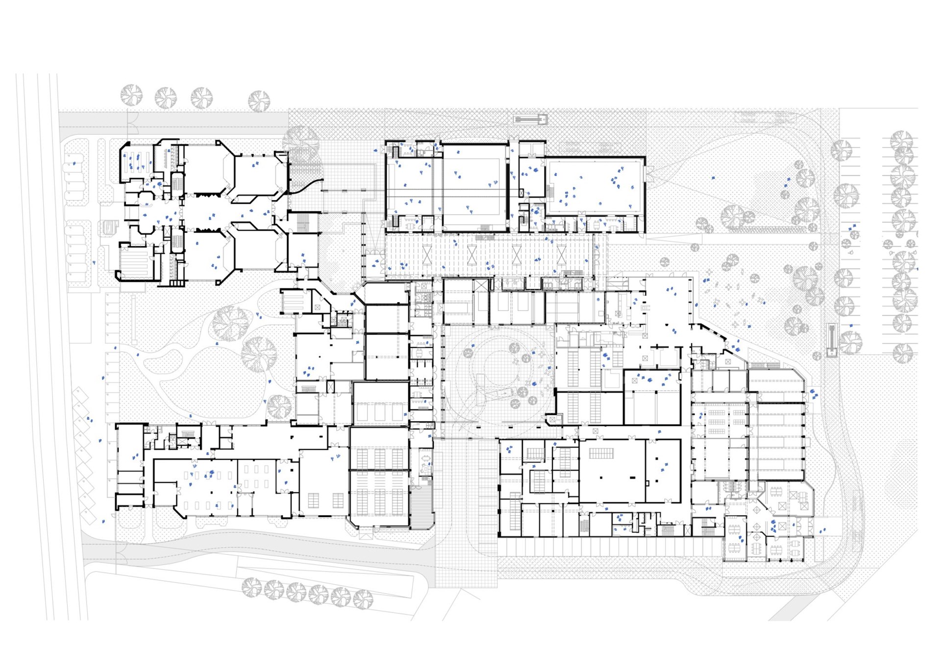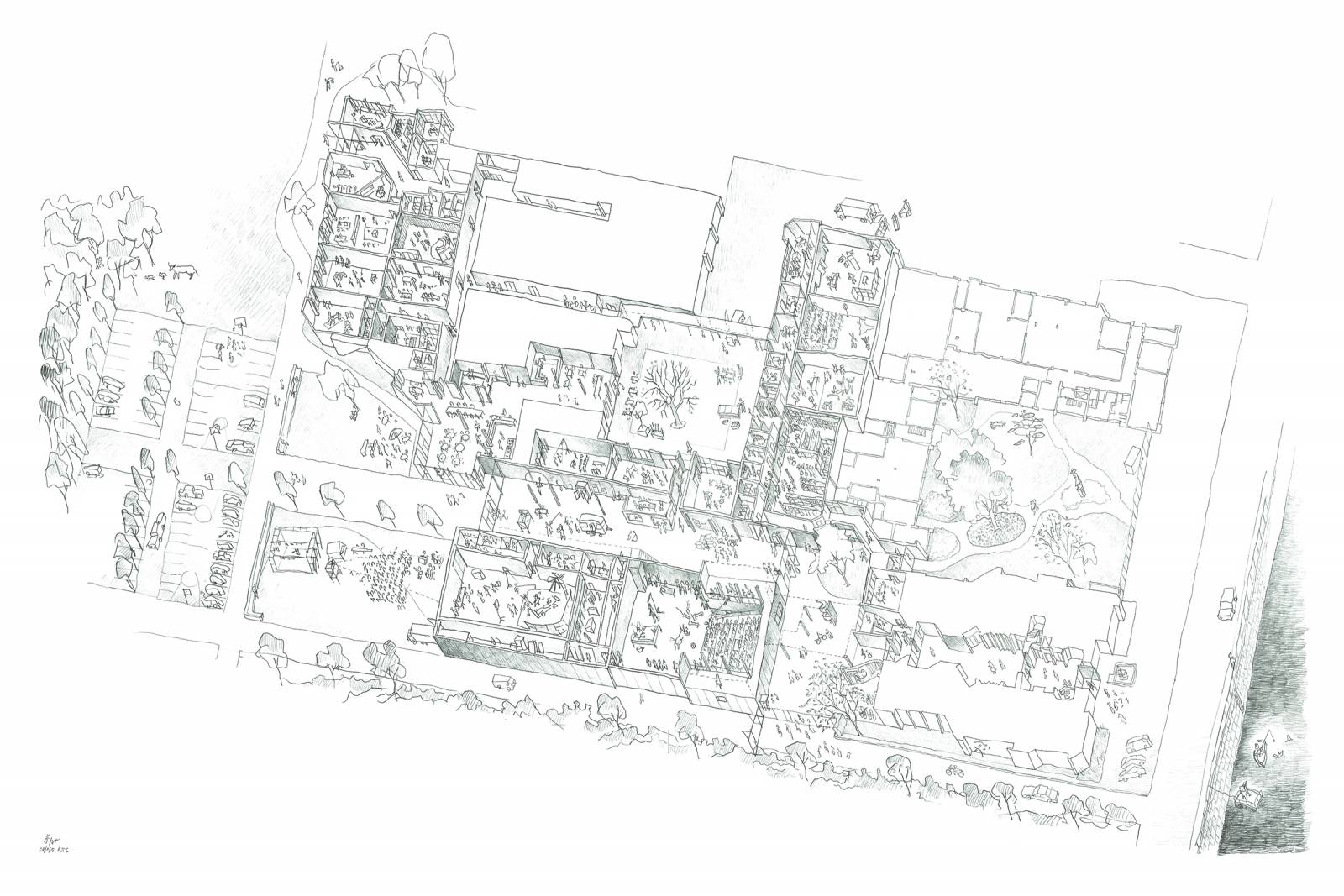 En positionnant précisément la nouvelle construction, la structure existante des "cours entourées de bâtiments" sera complétée. Chaque cour est unique et invite à une utilisation différente : la "cour théâtre", la "cour cinéma" et le "jardin caché". En misant résolument sur le caractère "simple" du bâtiment existant, un lieu singulier émergera.