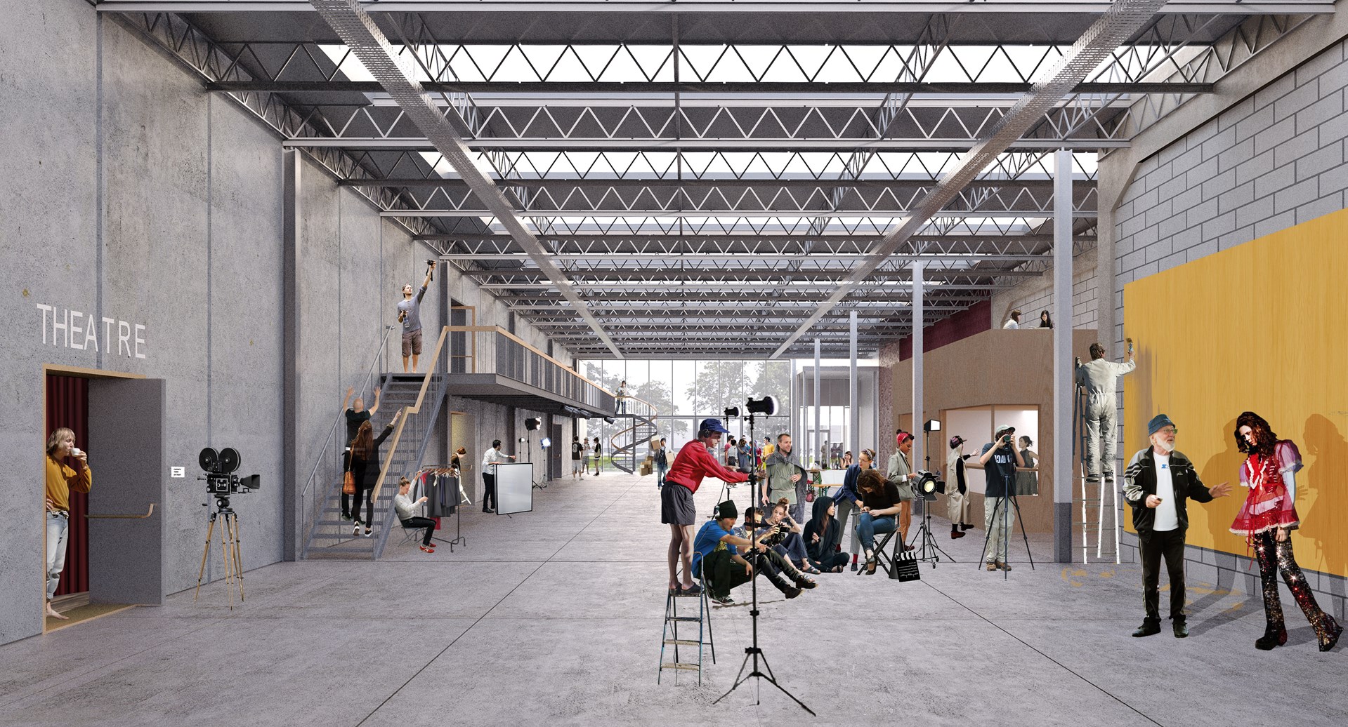 Les travaux de construction et de rénovation permettront aux étudiants, aux enseignants, mais également aux habitants du quartier ainsi qu'à d'autres invités et utilisateurs d'accéder à une salle de théâtre à l'acoustique haut de gamme et à un studio de cinéma de pointe. Une grande galerie-foyer - l'agora - servira d'espace de production connectif et créatif rassemblant étudiants et enseignants des divers programmes. De plus, de nombreux espaces de cours et d'entraînement seront aménagés, surtout dans la partie rénovée.