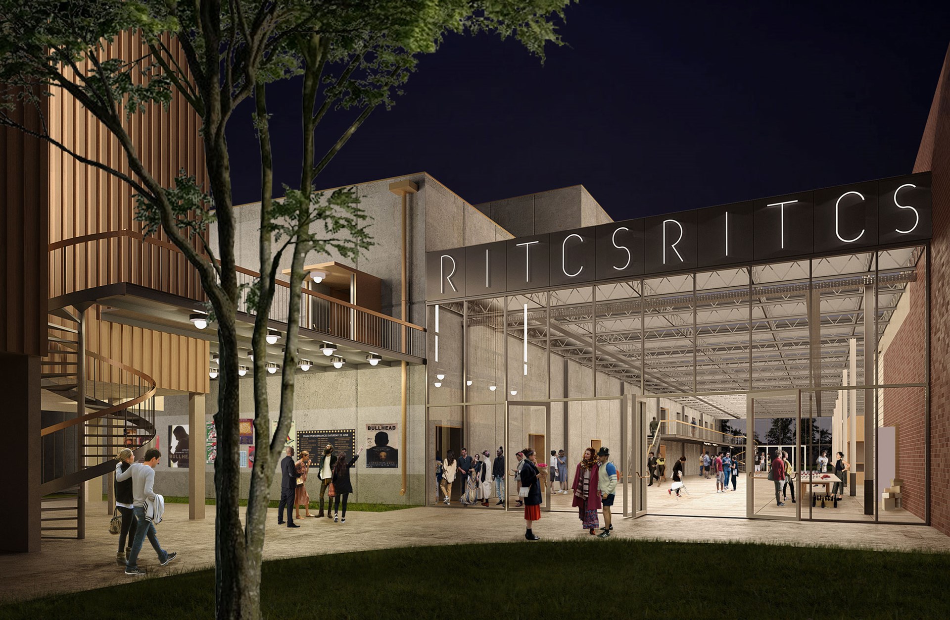 Le long du canal et étroitement lié à l'université, le RITCS trouvera sa place appropriée dans cette ville productive. Une ville dont il contribuera, selon les concepteurs de ATAMA et V+, à façonner l'image. Le profil est à la fois familier et nouveau, combinant et interprétant les formes de toits des studios de cinéma, des bâtiments de théâtre et du patrimoine industriel pour former une nouvelle entité visuelle.