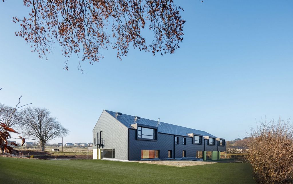 La Barn House à Roeselare de BURO II. La simplicité formelle du projet s’intègre comme un élément classique du paysage tout en renfermant une architecture très contemporaine.