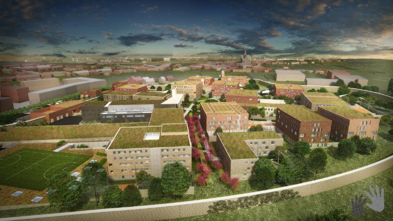 La prison de Haren : Pour ce projet ambitieux et complexe, nous avons veillé à mettre le détenu et sa nécessaire réinsertion ainsi que les habitants de Haren et leur environnement au centre de notre réflexion. Le projet tente de répondre aux attentes des uns et des autres et veille, par ses différentiations d’échelles et d’espaces, à créer un lieu de vie et à s’incrire dans son environnement bâti et paysager.