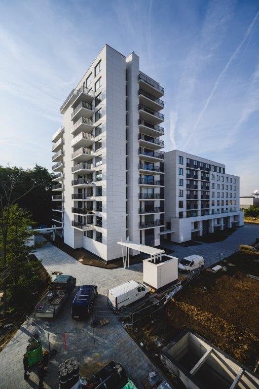 Le projet a été réalisé par l’entreprise générale de construction Louis De Waele en association momentanée avec l’entreprise générale Socatra. Le projet s’étendait donc sur deux communes et se divisait en deux phases distinctes – une par commune – mais avec un permis de bâtir global. La première phase, à Schaerbeek, compte 86 unités de logement et un rez-de-chaussée commercial. Elle est livrée et habitée depuis juin dernier. La seconde, à Evere, comptera 114 unités de logement et est en voie d’achèvement, prévu pour avril-mai 2020. Chaque phase du chantier a duré un peu moins de trois ans, ce qui est peu compte tenu de l’ampleur du projet.