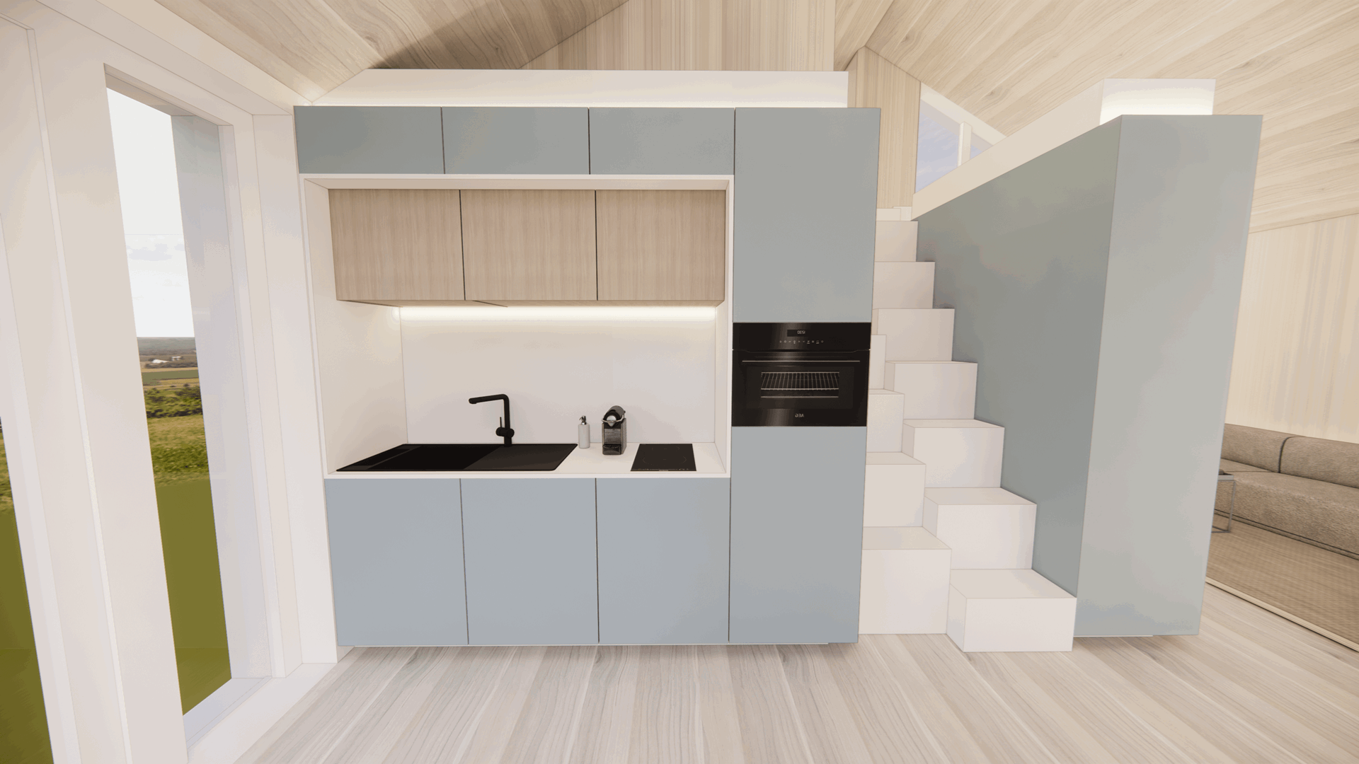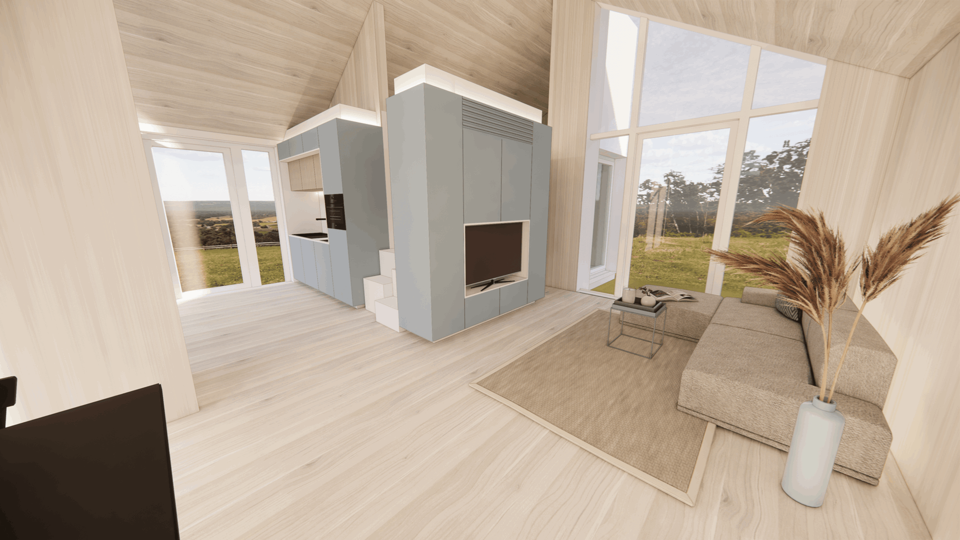 Kozo et Bao Living ont rapidement perçu la valeur ajoutée d’une combinaison de leurs systèmes et ont décidé de mettre en place une collaboration. Le résultat est une maison presque 100% circulaire : le SAM garantit la circularité des utilités – il est placé au niveau du puits où entrent toutes les techniques qui ensuite le traversent - et avec le système de Kozo, la durabilité de la structure est également assurée.