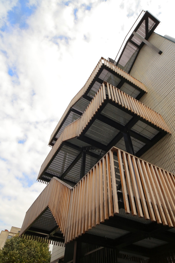Comme les architectes ont ouvert le socle, la circulation verticale a dû être déplacée. Cela a aussi complètement changé la circulation interne. La cage d'ascenseur a été déplacée et un nouvel escalier d'évacuation en acier galvanisé à chaud avec garde-corps en bois dur a été construit sur le côté ouest du bâtiment. En outre, le cabinet d'architectes a créé plusieurs grands vides entre les étages supérieurs et inférieurs pour permettre une interaction spatiale. Les éléments ascensionnels ont été soulignés par une utilisation des mêmes matériaux et de détails, à savoir les garde-corps et les mains courantes en panneau de bois tendre à trois couches et les nouvelles marches en frêne teinté.