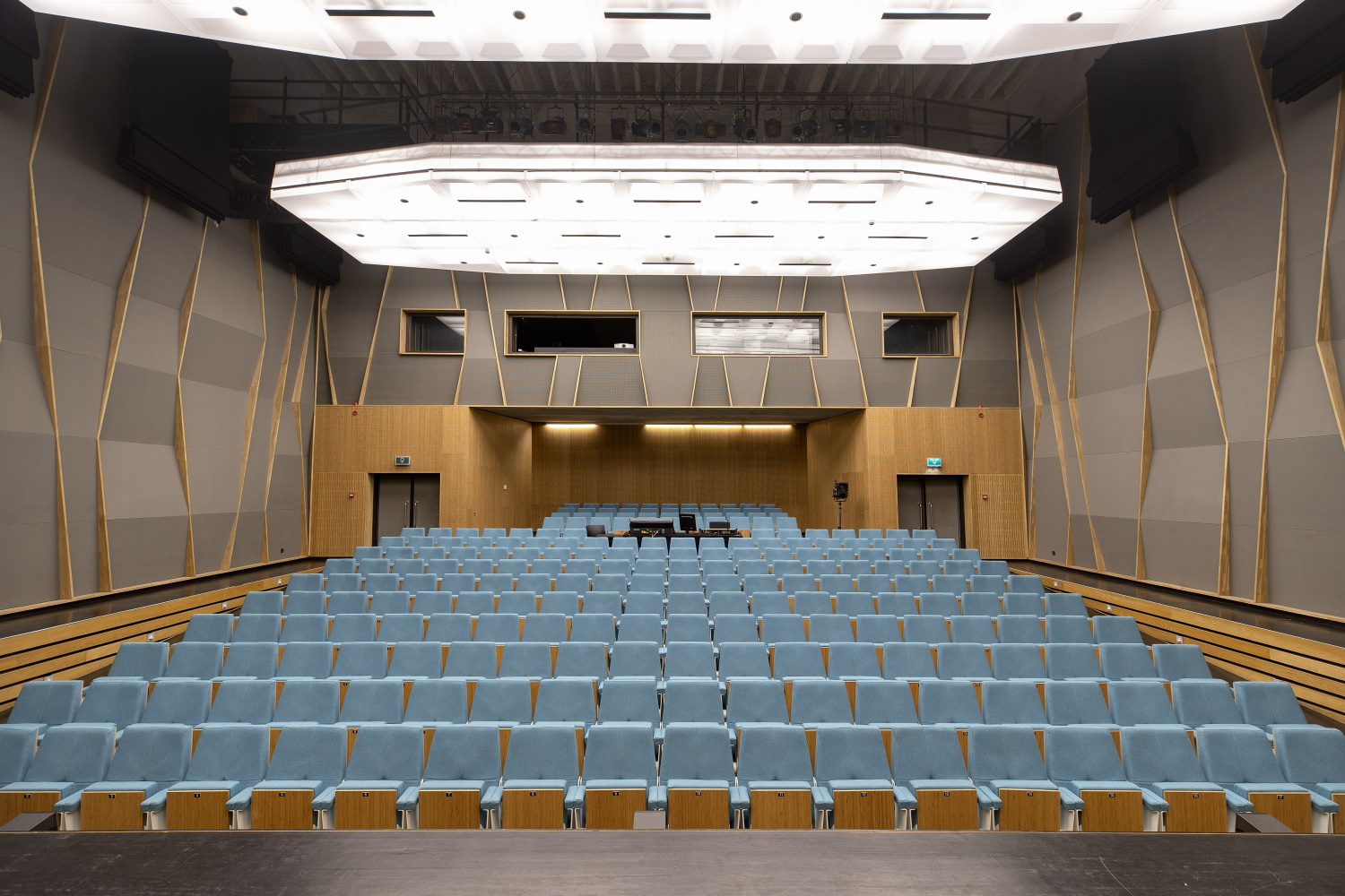 Le cabinet d'architectes s'est principalement concentré sur le foyer du rez-de-chaussée. Il en a délibérément gardé l'interprétation vague afin que l'espace puisse non seulement être utilisé pour diverses fonctions, mais aussi devenir un très grand espace de circulation où les gens peuvent se rencontrer. Le foyer est également relié au nouvel axe urbain de Courtrai. En plaçant l'entrée du centre musical le long de ce nouvel axe et en remplaçant le pied du bâtiment par un socle ouvert et vivant, Dial Architects a créé un nouvel espace public couvert. La nouvelle salle de concert, un nouveau projet qui sert de contrepoint architectural à la composition, définit le nouvel espace public avec le centre musical. Il se raccorde parfaitement à la place existante et assure ainsi l'intégration urbaine du bâtiment.