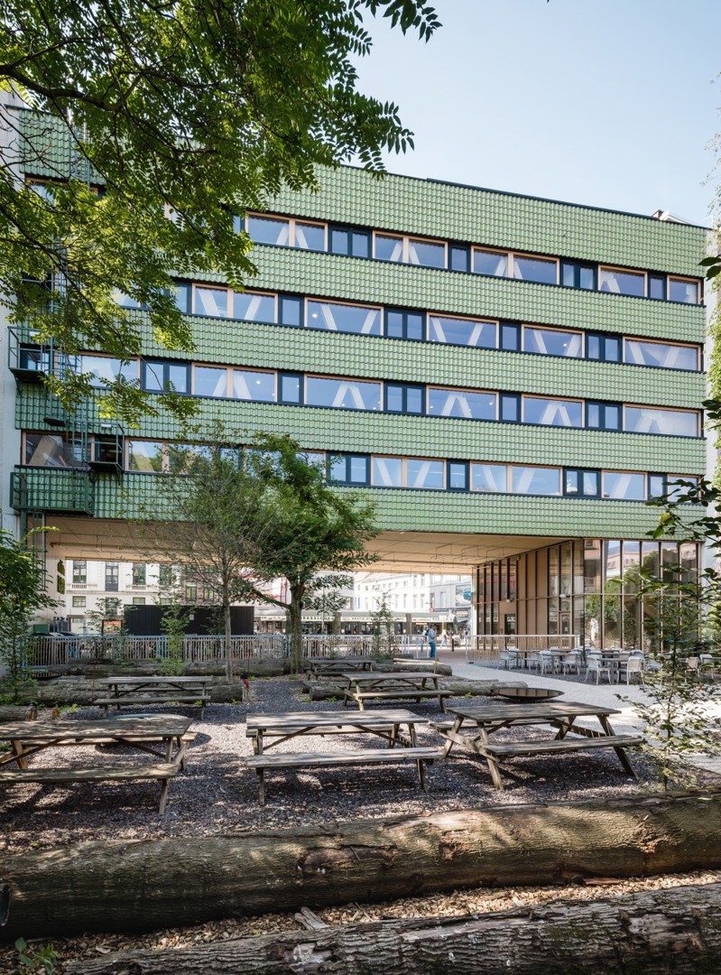 Les places de stationnement brillent également par leur absence. Elles ont été remplacées par des abris à vélos. Grâce à la proximité de la gare centrale et des arrêts de tram et de bus, 95 % des employés se rendent aujourd'hui au travail en transports publics ou à vélo.