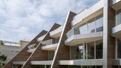Iván Faltoyano : Toute la forme du bâtiment est adaptée au terrain très étroit. La façade avant est orientée vers le sud-est pour maximiser la lumière du matin et l'empêcher d'entrer pendant les heures les plus chaudes de l'après-midi. En même temps, la façade dynamique avec ses stores assure l'intimité des terrasses. Les cloisons intègrent également les installations techniques et les services.