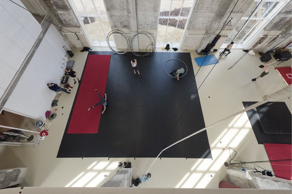 Depuis les années ’90, l’Atelier d’Architecture Daniel Delgoffe conçoit des projets de rénovation et de construction d’établissements scolaires. Pour l’Ecole Supérieure des Arts du Cirque (ESAC) à Anderlecht, les architectes ont combiné les deux à la demande du Service Public Francophone Bruxellois, responsable de l’enseignement et de la formation en Région de Bruxelles-Capitale.