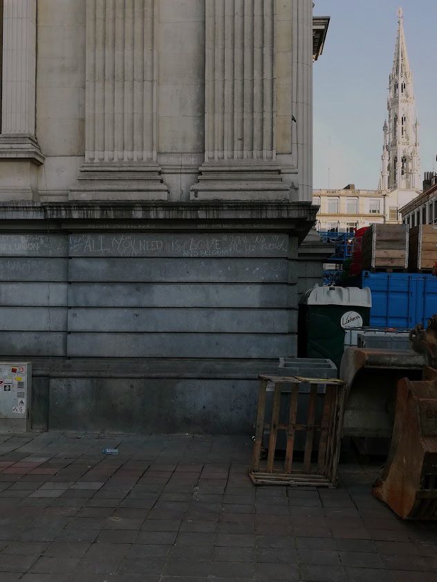 « L'escalier de la Bourse était symboliquement l’espace public le plus important de Bruxelles. Un espace où les gens se rassemblaient pour manifester ou se recueillir juste après les attentats. De nos jours, cet endroit est dépolitisé car les rassemblements politiques et les manifestations sont interdits. » La maquette montre deux scénarios différents selon la saison. En été, le socle peut devenir un bassin public où les gens peuvent simplement s'asseoir près de l'eau ou nager. En hiver, l'eau peut être retirée afin que les fondations montrent leurs qualités labyrinthiques. Chacun peut s’y cacher du public pour créer une alternative aux espaces publics contrôlés dans le centre de la ville.