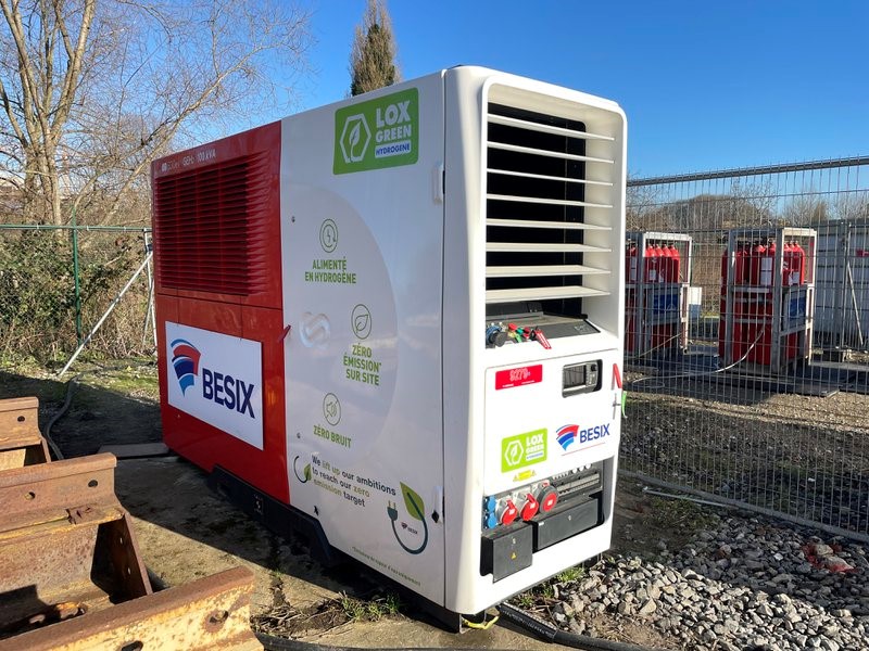 Le générateur d'hydrogène installé par BESIX sur son site de Sint-Pieters-Leeuw pour une période de test de quatre semaines, à l'initiative de BESIX Environnement qui a coordonné l'opération, était composé d'une pile à combustible et d'une batterie interne, avec une capacité totale installée de 110 kVA. L'objectif du test était de savoir dans quelle mesure un générateur d'hydrogène combiné à une batterie peut répondre à la demande d'électricité dans le contexte spécifique d'un chantier de construction, le tout de manière silencieuse et non polluante.