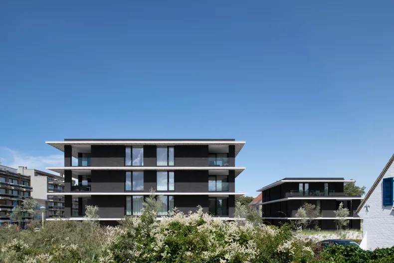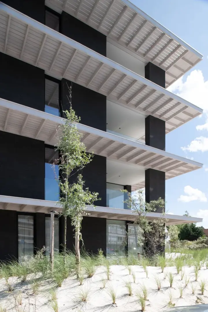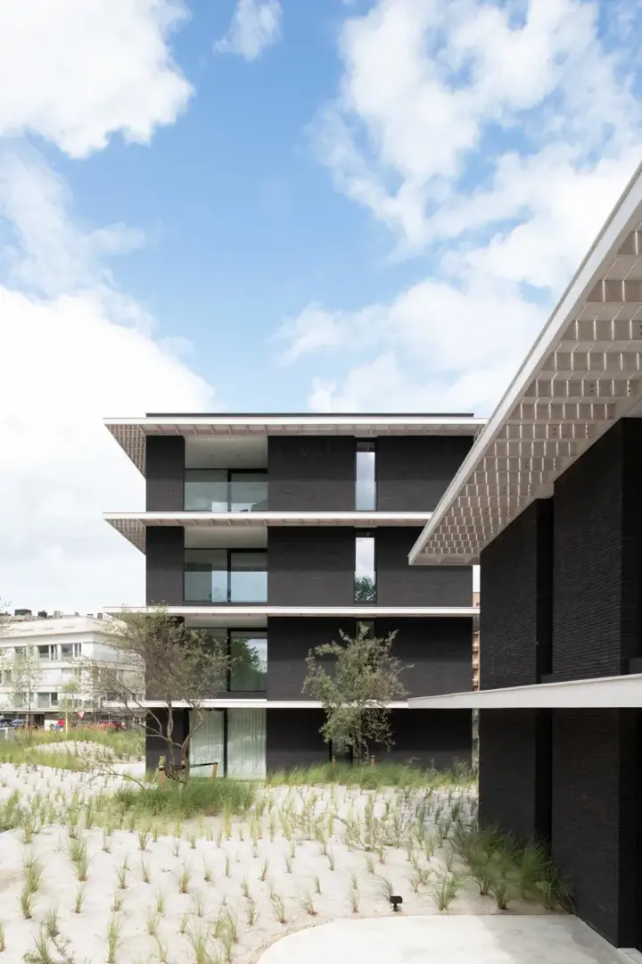 À l’angle de l’avenue de la Reine et de la Sloepenlaan à Sint-Idesbald se situe la résidence Marianne Brandt, un projet de construction neuve remarquable, fruit d’une collaboration réussie entre le maître d’ouvrage Rietveld Projects et le bureau d’architecture element architecten. Ce développement résidentiel se compose de 18 unités de logement et d’un parking souterrain, intégrés dans un paysage dunaire qui s’inscrit harmonieusement dans le site naturel côtier environnant. La brique de façade écologique linea7 7021 de Vande Moortel a été choisie comme matériau d’expression architecturale sur la côte belge.