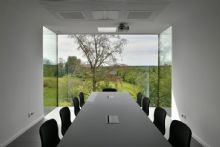 Pour relier physiquement les 2 bâtiments tout en scindant les 2 phases de construction, les architectes imaginent un espace passerelle vitré sur 2 niveaux. Ces zones de transitions permettent également de conserver une perspective traversante au cœur du projet. Tout comme les 2 passerelles, les pièces de bureaux sont agencées pour offrir un maximum de lumière naturelle. Cette démarche est encore plus évidente pour les 2 salles de réunions, littéralement projetées par des extensions vers l’extérieur du bâtiment.