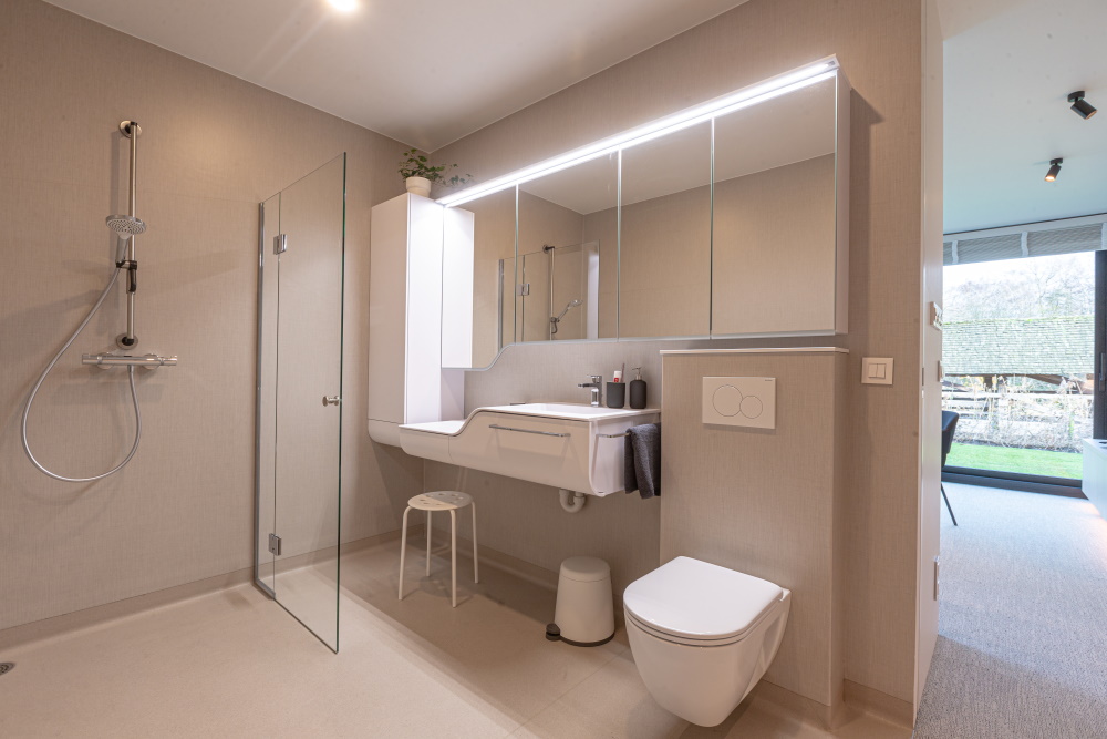 Les logements sont dépourvus d’obstacles et accessibles aux fauteuils roulants et déambulateurs. Une main courante traverse l’armoire murale. La douche à l’italienne limite les risques de chute. Elle est pourvue d’un support et d’un espace pour soignant, tandis que le meuble de salle de bains est à hauteur d’assise. Le revêtement de sol est anti-dérapant et absorbe les chocs. Une bande lumineuse au sol facilite l’orientation, même dans l’obscurité. CANGO bénéficie des techniques les plus modernes en matière d’isolation, de ventilation, de chauffage et de refroidissement. L’entretien du module est minime. Pour répondre aux besoins spécifiques du résident, une multitude de fonctions de soins (capteurs de présence, bouton d’urgence ou même luminothérapie) peuvent être installées.