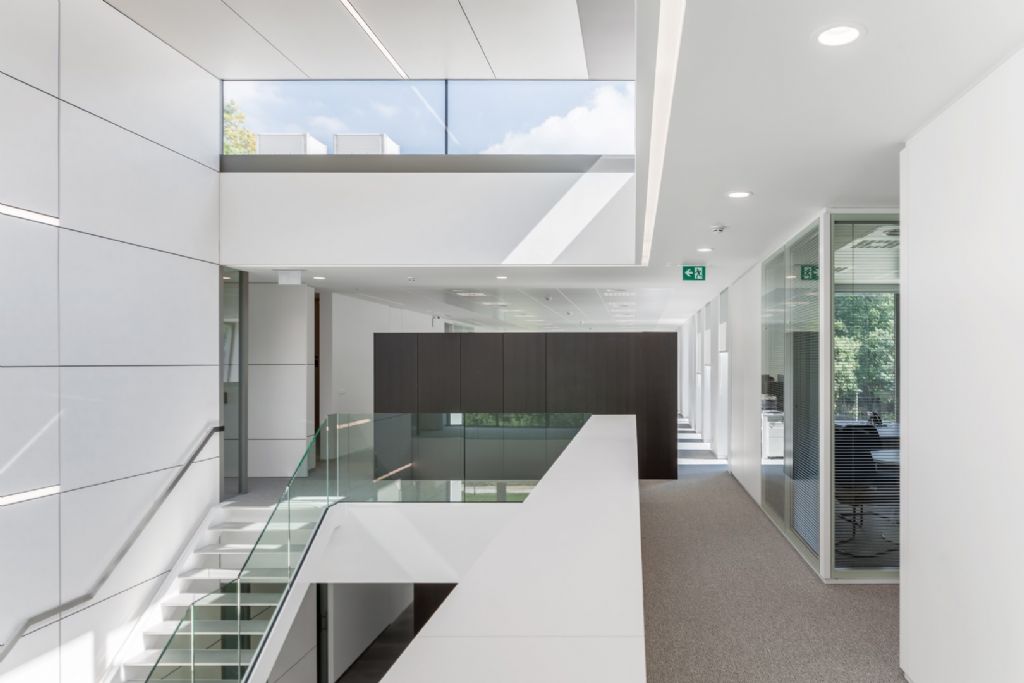 Le bâtiment est constitué de 2 plateaux de ± 485 m² desservis par un noyau central. Le rez-de-chaussée comprend l’entrée en hall de réception, des bureaux en open space, une grande salle de réunion multimédias, une cafétéria. A l’étage se retrouvent des bureaux en open space et d'autres fermés pour les bureaux administratifs, ainsi que des petites salles de réunion partagées.