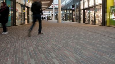 L’histoire du site est déterminant dans le choix des pavés en terre cuite. L’enjeu est d’en préserver le caractère industriel tout en affichant une ambiance volontairement urbaine. D’autre part, le confort du revêtement est essentiel étant donné la vocation commerciale du projet, tant pour les espaces intérieurs qu’à l’extérieur. Les subtiles variations de couleurs du pavement participent à l’atmosphère accueillante et agréable requise. Les teintes brun rouge des SeptimA Châtain et Acajou dominent, tandis que les SeptimA Taupe et Olive apportent vitalité et dynamisme.
