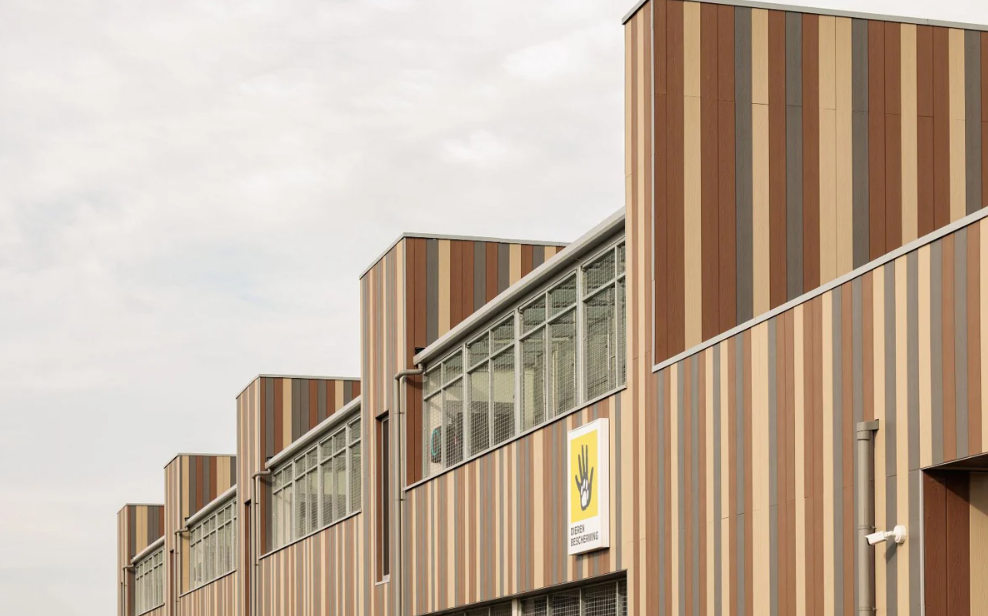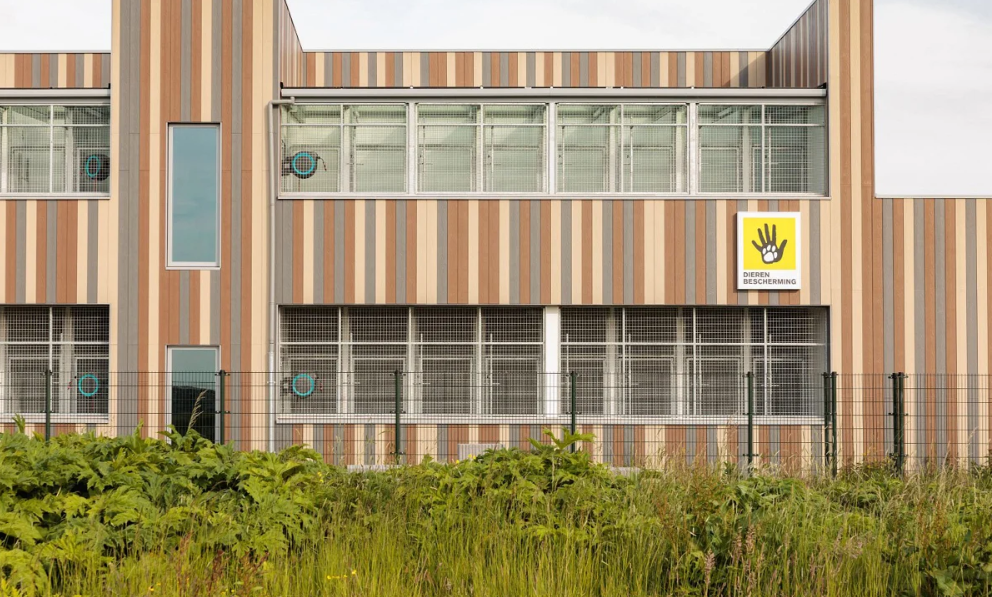Le 20 juin 2025, le ‘Dierenbeschermingscentrum Noord-Nederland’ (Centre de Protection des Animaux du Nord des Pays-Bas) a officiellement ouvert ses portes à l’Aalborgweg, à Groningue. Les animaux en détresse ou sans foyer peuvent désormais être accueillis dans ce vaste bâtiment neuf, qui allie fonctionnalités pratiques et qualités esthétiques remarquables. Les façades ont été en grande partie habillées de lames Cedral Click Wood dans trois teintes différentes, donnant à l’ensemble une allure dynamique et naturelle.