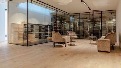 Un intérieur en strates : du parquet en chevrons à un temple du vin