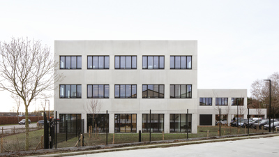 « Ils voulaient réfléchir avec l’architecte, dans le cadre d’un processus participatif. Alors que quatre autres candidats ont soumis une proposition concrète, nous avons uniquement fourni une note analysant trois options : conservation des bâtiments existants, volume compact et fonctionnalité du plan. Ce n’était pas encore un projet, mais une base de discussion. Nous avons remporté la mission et durant la conception, la neutralité est devenue un facteur clé. À ce moment-là, l’affaire George Floyd était très présente, ce qui renforçait encore cette exigence. Matériellement, cette neutralité s’exprime parfaitement avec le béton préfabriqué. »