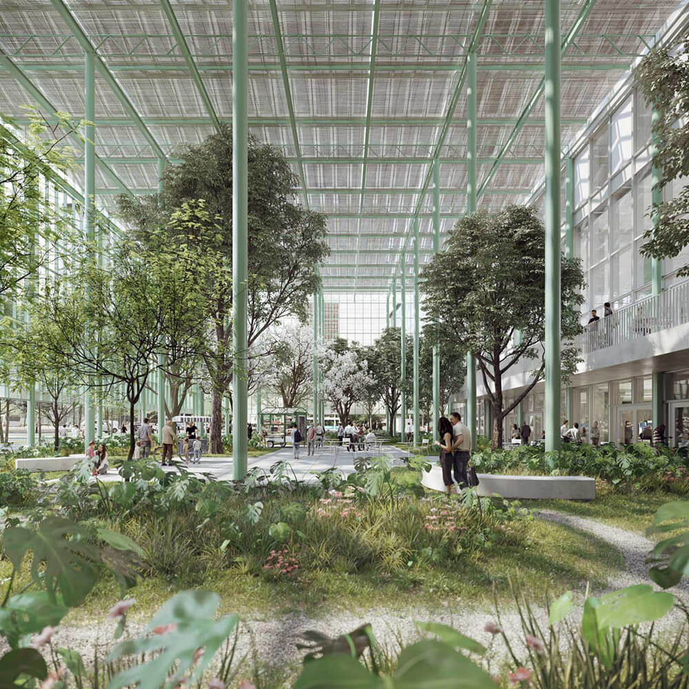 Il y aura également beaucoup de plantes dans le bâtiment lui-même. « En ce qui concerne la végétalisation des bureaux, il s'agit d'un projet unique par son ampleur », explique John Kinnen. "Il y aura 3 000 plantes de grande taille dans le bâtiment, qui ressemblera à une forêt couverte pour les personnes assises à leur bureau ».