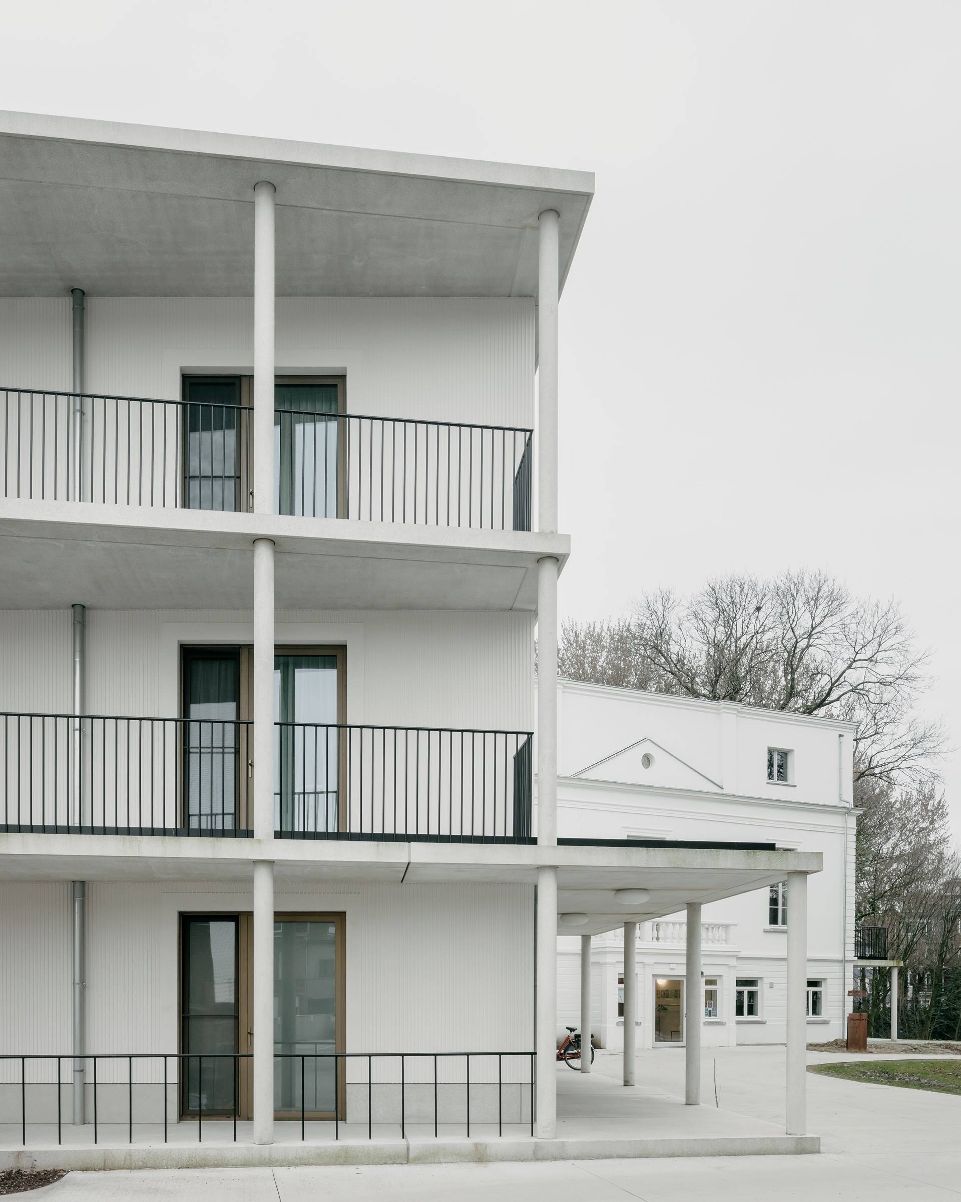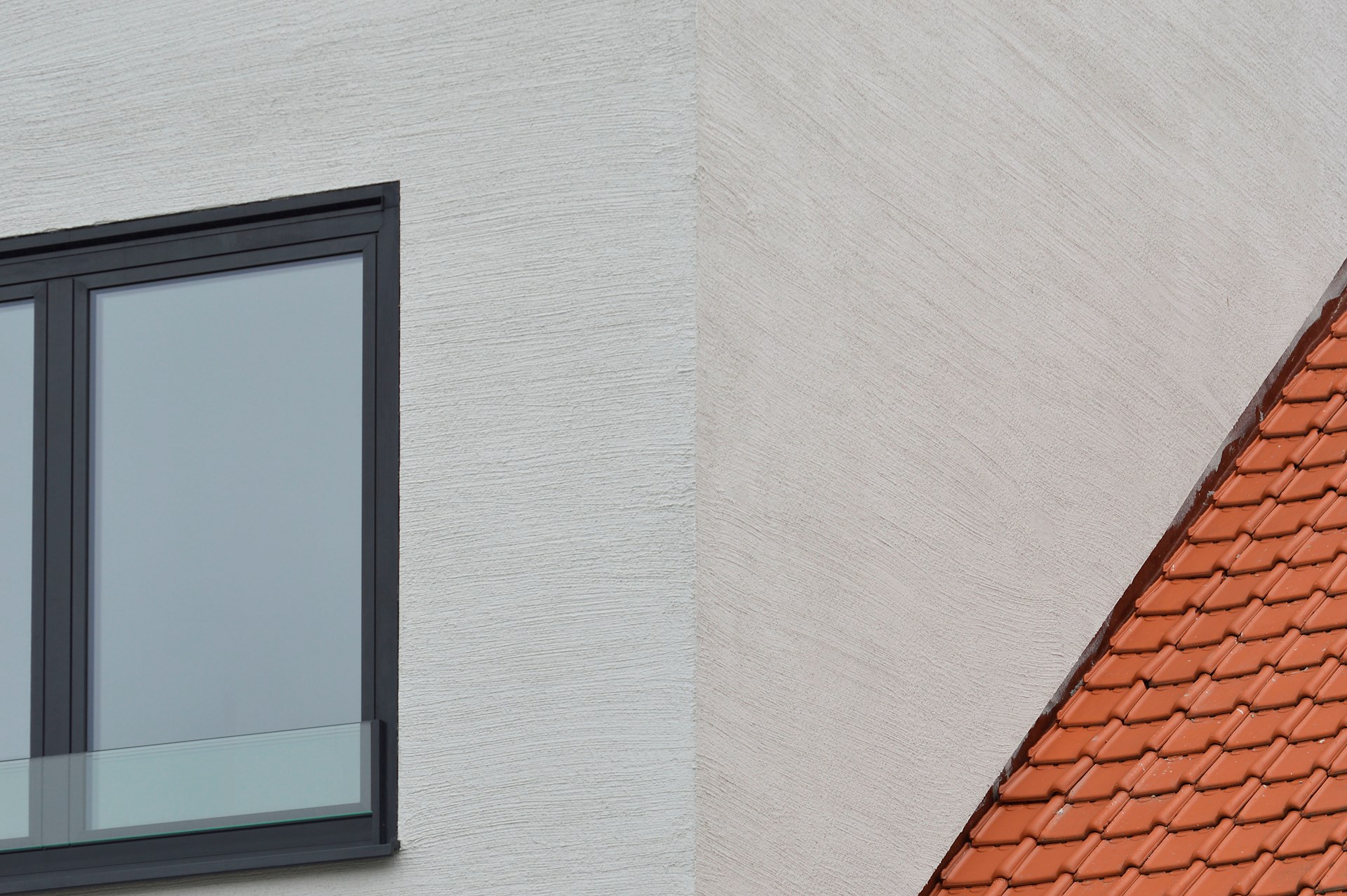Pour l'architecte Jan Vermeulen, ces possibilités supplémentaires ont été décisives : "Nous recherchions un certain effet dans la façade de la nouvelle partie du bâtiment afin d’assurer une continuité des matériaux, ainsi que du concept avec la maison de campagne historique néoclassique. Nous avons voulu créer une façade profonde, dans laquelle un effet subtil d'ombre renforce le caractère du bâtiment. La façade devait également faire impression de loin. C'est ainsi que, en concertation avec Sto, nous avons opté pour StoSignature", explique Jan Vermeulen du Studio Jan Vermeulen.