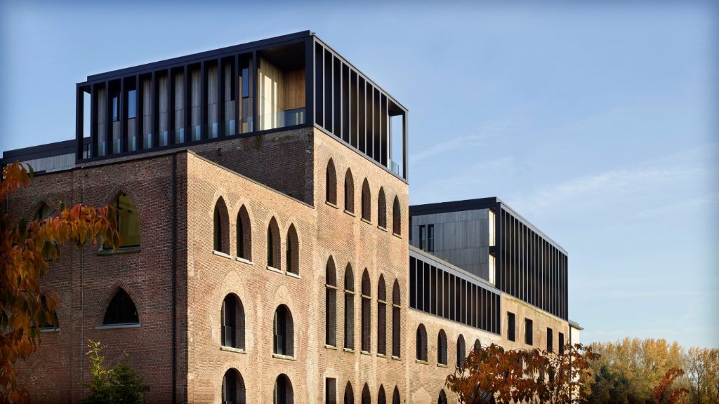 Capawood, un ensemble d’entrepôts en briques, fait partie d’un complexe de logements et de bureaux sur l’ancien site industriel du ‘Kanaal’ à Wijnegem. Avec la réaffectation, ces bâtiments ont été rehaussés d’un volume en acier, qui se composent d’un ensemble porteur extérieur con- stitué de colonnes en profils creux soudés, qui retiennent les dalles porteurs. La structure métallique ouverte de la surélévation contraste avec le caractère monolithique de la bâtisse en briques. Les colonnes de la façade sont constituées de tôles de six, huit, dix et quinze millimètres d’épaisseur. L’ensemble de la construction a été galvanisé, protégé avec une peinture intumescente et revêtu d’une couche de couleur durable de composition spéciale dite “rouge-brun de Wijnegem”. Pour les bâtiments longs, la structure métallique se compose de portiques constitués de solives et de tubes verticaux avec des piliers intermédiaires placés au milieu de la portée. L’entrepôt le plus haut est pourvu d’une structure portante extérieure de quatre écrans vierendeel, chacun rigide en lui-même. Selon le jury, « cette intégration élégante avec les bâtiments existants a, par ces colonnes ‘surdimensionnées’, un charisme classique. Pour la structure portante et apparente des diagonales (contreventement) étaient rejetées. Un champ de tension intéressant se développe entre la vision de l’ingénieur et celle de l’architecte. La construction métallique est très bien exécutée. »