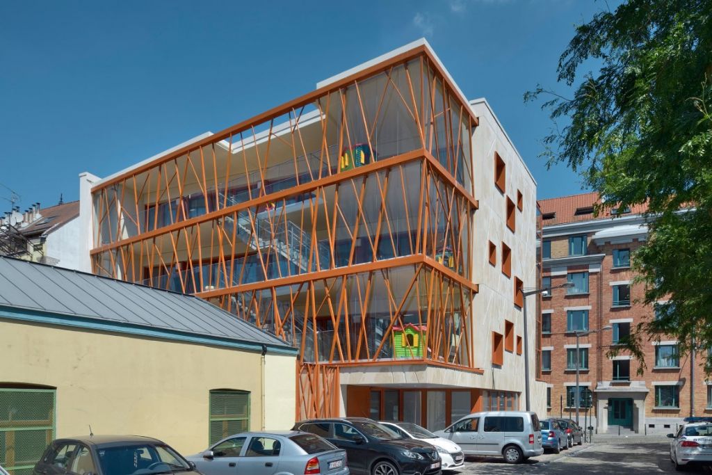 Sur le plan esthétique, l’extérieur de la Crèche Hectolitre interpelle. R²D² Architecture a imaginé une « cabane dans les arbres » dans le centre de Bruxelles, en référence au monde imaginaire des enfants. De plus, le souhait était de voir visualisée une image conceptuelle et abstraite des branches et des feuilles. Un résultat sans compromis n’est possible que grâce à une collaboration étroite entre le bureau d’architecture, l’entrepreneur et le préfabricant. Ce fut certainement le cas ici. Pour atteindre le résultat obtenu, un travail important a été effectué sur le dessin, pour restituer sur la façade la vision de l’architecte de la façon la plus optimale possible.