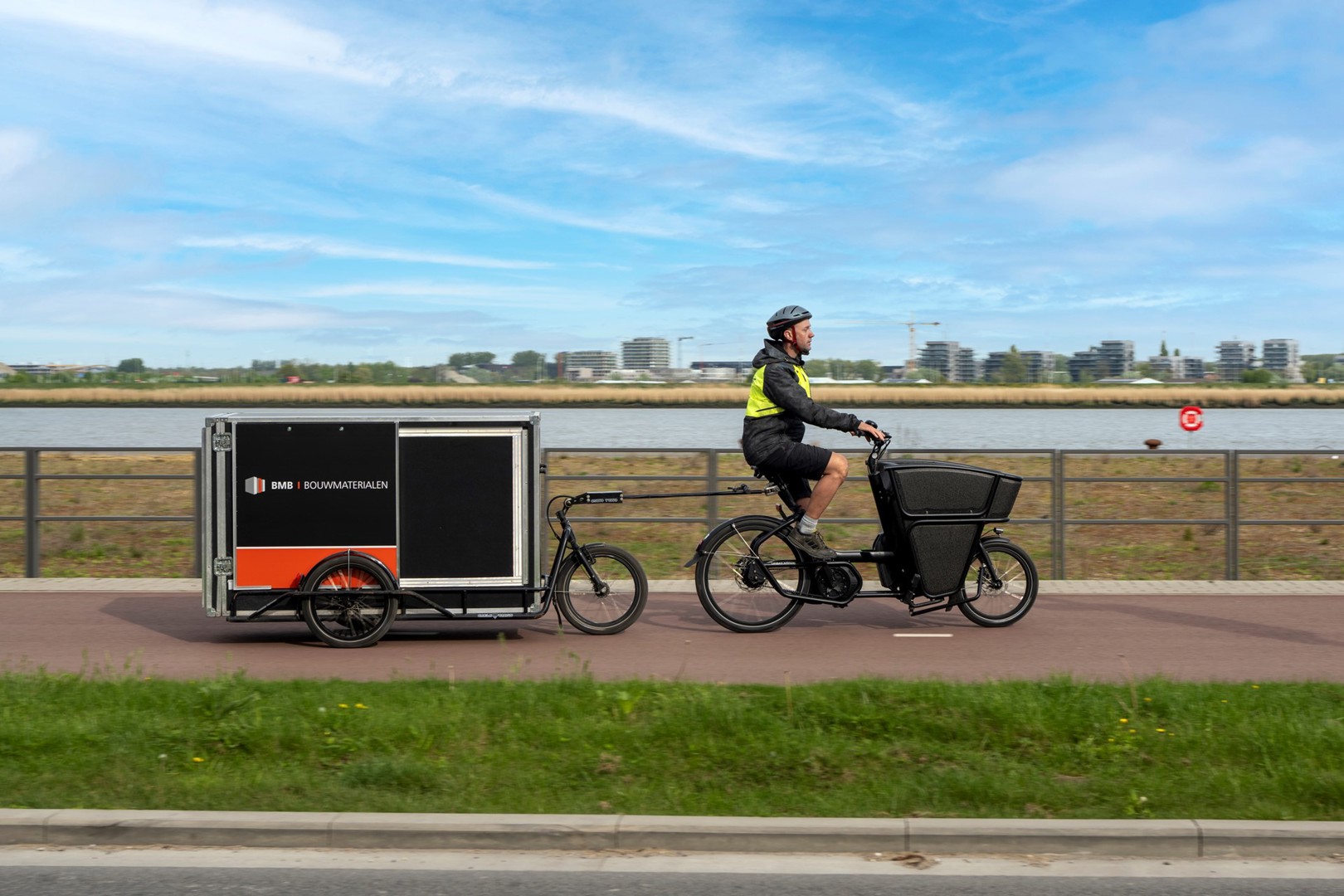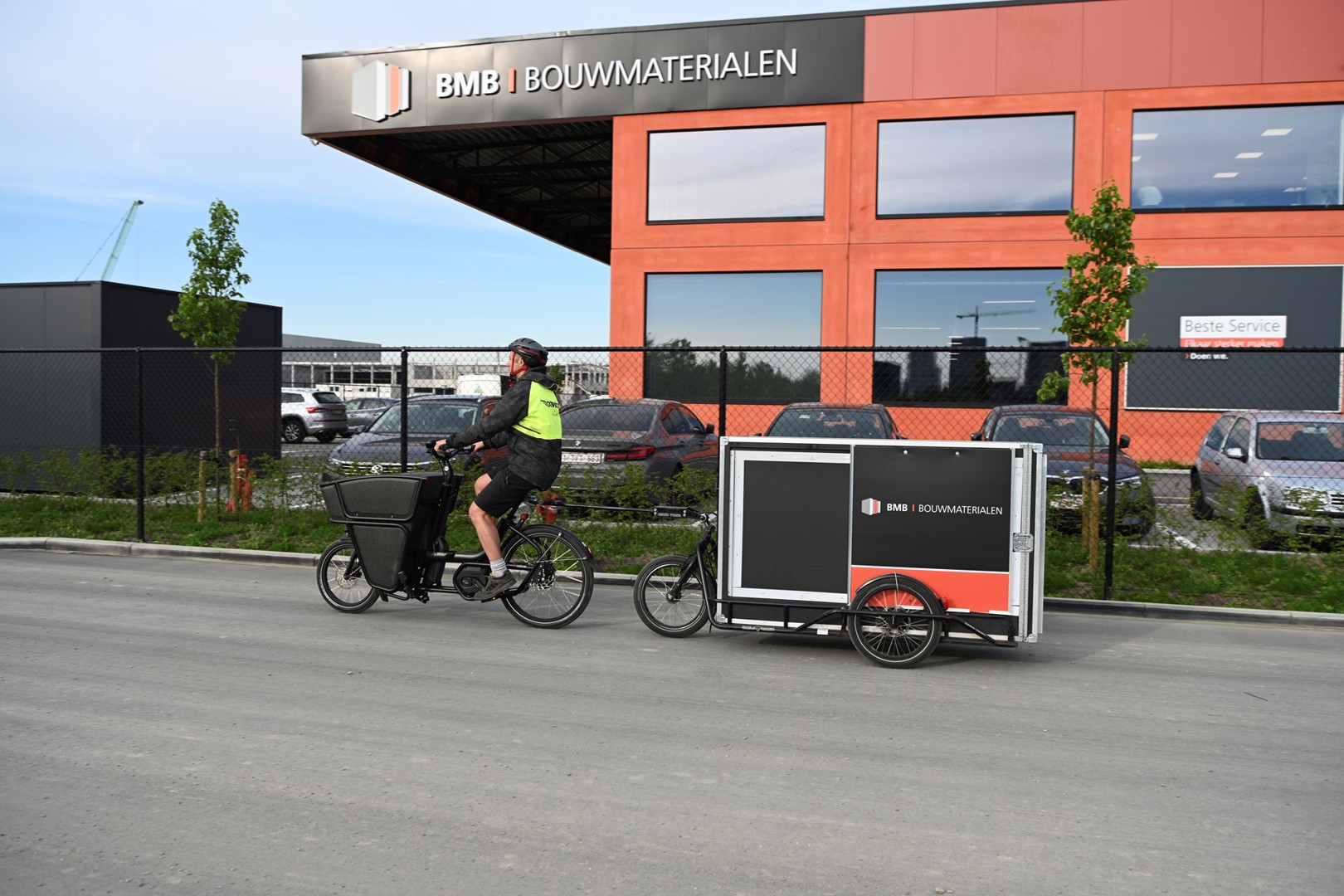 Jusqu'à aujourd'hui, de nombreux entrepreneurs faisaient encore des allers-retours au site de BMB Bouwmaterialen pour collecter des matériaux de petite et moyenne taille. Le matériel dont ils manquent soudainement sur le site, souvent de petits articles. C'est désormais du passé : désormais, un entrepreneur qui passe commande avant 11 h45 peut se faire livrer les matériaux sur le chantier le jour même, à vélo.