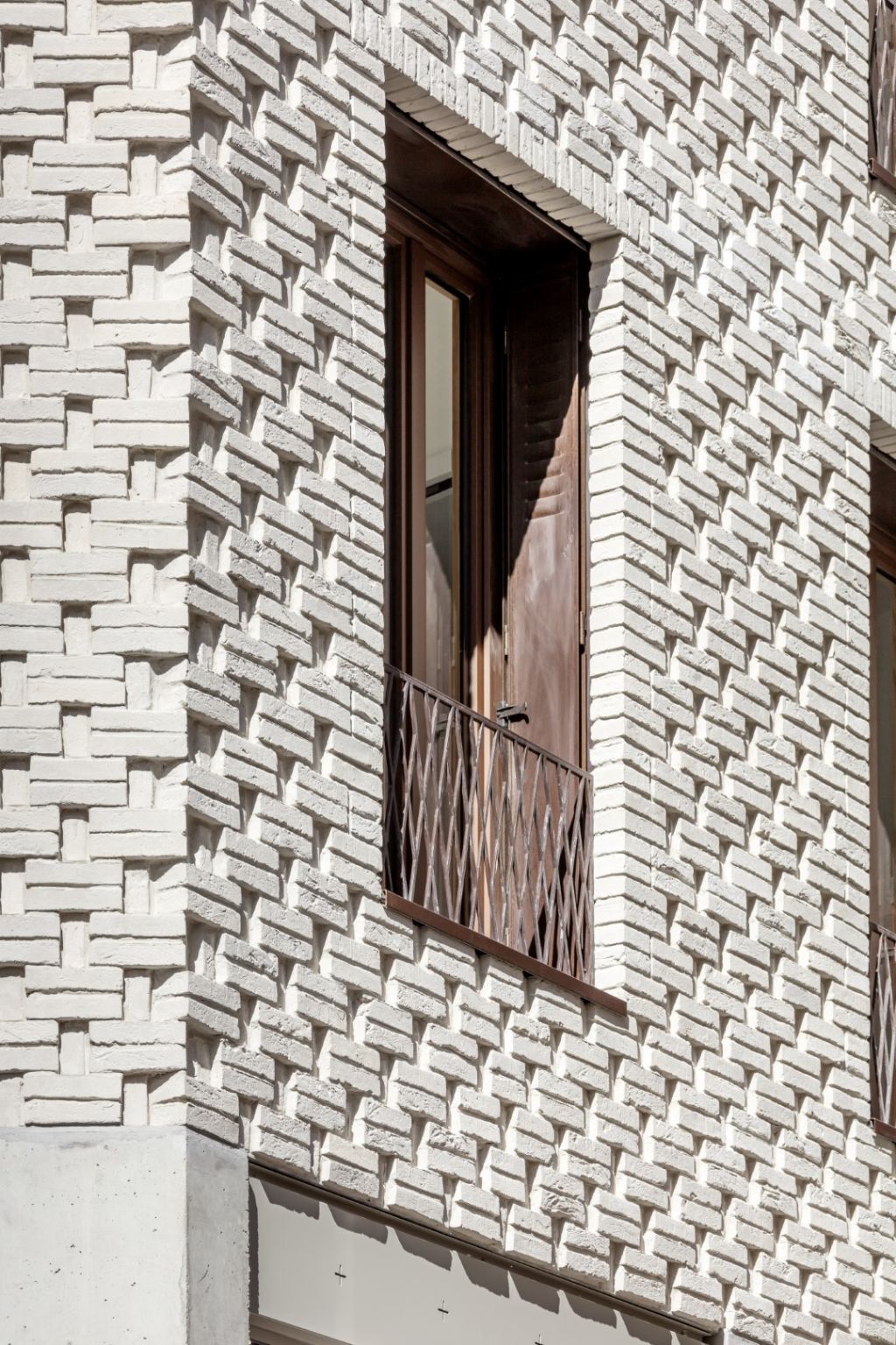 Afin de s’intégrer dans le quartier, les façades de l’immeuble réutilisent plusieurs archétypes de l’architecture faubourienne : la trame régulière des pleins et des vides, les ouvertures verticales de 120 cm de large, le retournement de la façade sur les deux parties de l’angle, la toiture en zinc à pans multiples, les persiennes en accordéon et les garde-corps ouvragés. Au rez-de-chaussée, les deux commerces adoptent chacun une écriture propre en façade, faisant écho aux devantures variées qui se succèdent dans la Rue des Trois Frères.
