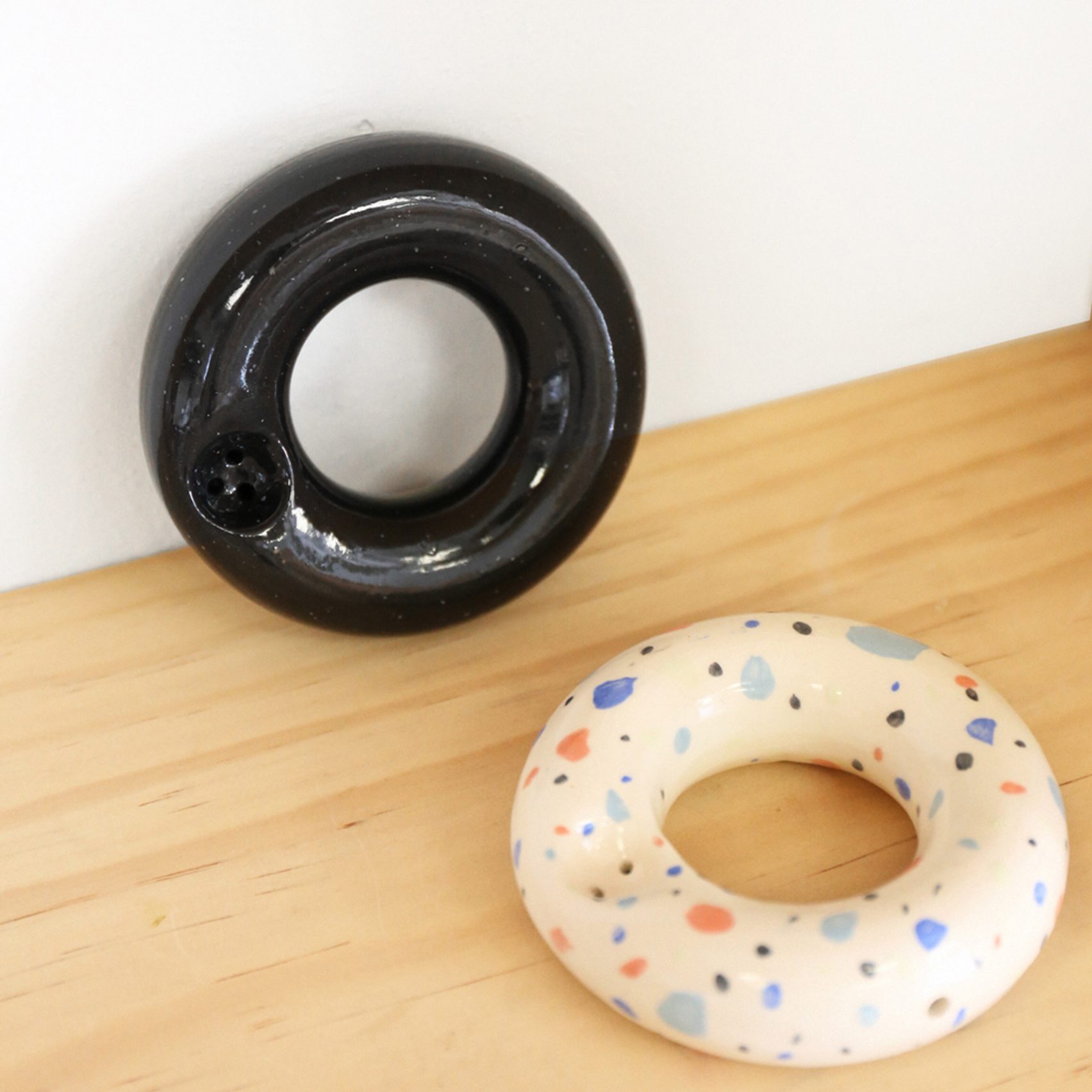 John Quick, un étudiant en art, a créé une collection de pipes à cannabis en forme de donuts, recouvertes d'un émail en céramique ressemblant à du glaçage ! La collection Donut Pipes est fabriquée à la main par Quick, qui étudie au Flagler College de Saint Augustine.