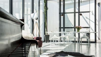 Un quart de queue Gaveau dans le living. Un mur d’amplis Marshall au fond du bureau. Deux guitares, un clavier et au-dessus de la rangée de livres consacrés à l’histoire du rock, un portrait de Bob Dylan qui ressemble étrangement à Swann, l’ainé de la famille. Chez les Bruckmann, l’art occupe une grande place. Et la musique avant toute chose. Une harmonie au diapason de leur maison lumineuse.