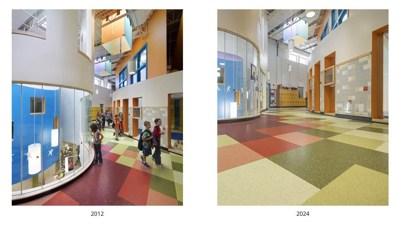Les enfants ne ménagent pas les sols. Silas Allard, professeur d’arts plastiques, se souvient : « J’ai vu des carreaux couverts de marqueur indélébile ou de colle pailletée, mais on ne le devinerait jamais en les regardant. » Pour la directrice Gallo : « Ces sols résistent à tout, même aux dégâts causés par les plus petits. » Et ce ne sont pas seulement les enfants qui les mettent à l’épreuve : les conditions climatiques difficiles de la Nouvelle-Angleterre – boue, sel, sable – n’ont pas entamé leur performance ni leur aspect.