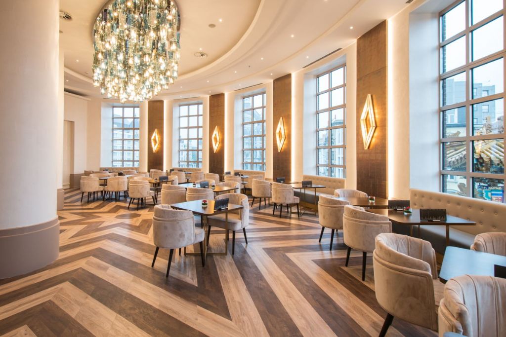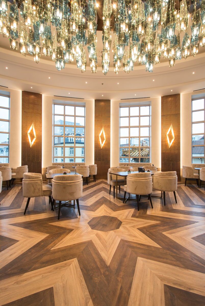 L’hôtel anversois Radisson Blu Astrid, situé sur la Koningin Astridplein, a subi une véritable métamorphose. La majeure partie du bâtiment majestueux, imaginé par le célèbre architecte Michael Graves, a été entièrement rénovée à la demande du groupe international Algonquin. Les sols dans la salle des fêtes ovale et l’espace petit-déjeuner sont des créations exclusives de l’équipe en charge du design de Moduleo, en concertation avec le designer londonien Alex Kravetz.
