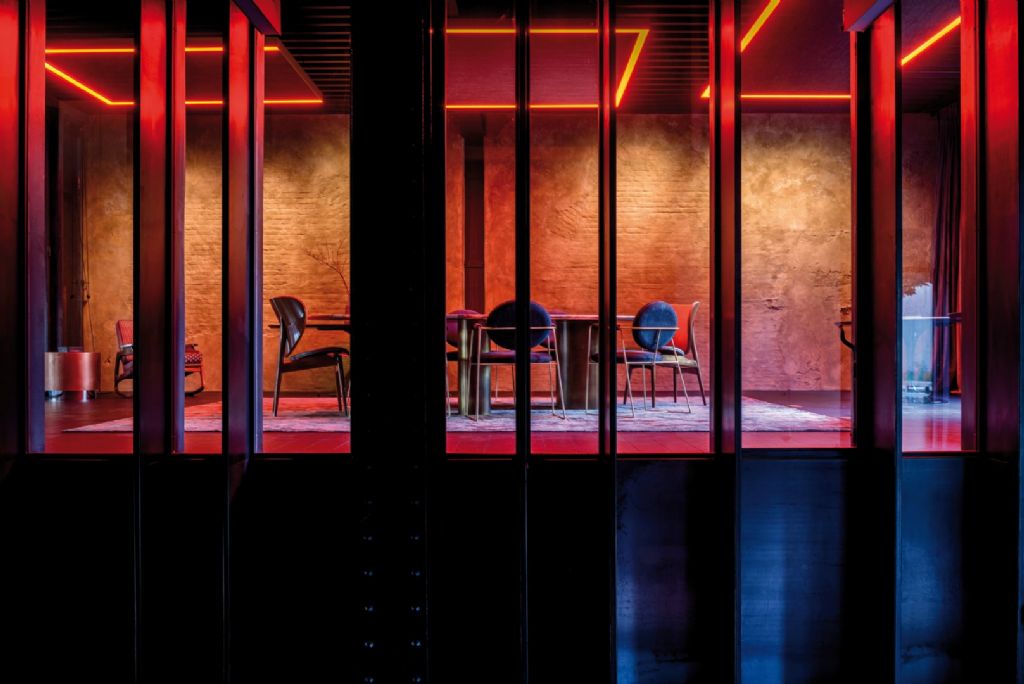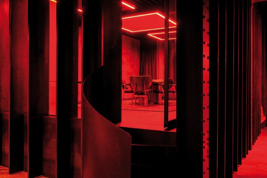 Stephan Mees explique : « Il s’agissait d’un projet sur le site de Kanaal, imaginé par Axel Vervoordt à Anvers. Nous avons pu développer un concept d’éclairage innovant en étroite collaboration avec Alex Gaspar, le propriétaire d’Autodialog. On avait d’abord pensé à installer un faux plafond dans une grande salle de conférence avec beaucoup de matériaux durs et un plafond en acier. Cependant, nous avons préféré imaginer un panneau acoustique dans lequel nous avons incorporé un éclairage. De cette façon, l'espace est resté au plus proche de son aspect original.