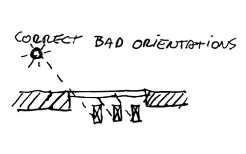 Ne prenez pas la lumière du jour à la légère : ne faites pas d'erreurs. Par exemple, si vous décidez de construire un toit en shed, il doit être bien orienté (orienté vers le nord et ne descendez pas en dessous de 62°). (Regardez vers le nord et ne descendez pas en dessous de 62°). Cela peut vous coûter cher de résoudre les conséquences (surchauffe). La meilleure solution vient de la conception, pas de la technologie ! Il est préférable de bien concevoir plutôt que de s'appuyer sur des techniques et de devoir réparer plus tard.