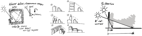 • Envisager des réflexions sur les murs sud ou sur des murs transversaux supplémentaires pour continuer à bénéficier de la lumière directe (voir le chapitre suivant).