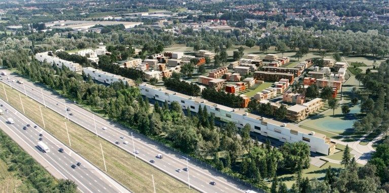 A quelques kilomètres de la frontière, dans la commune hollandaise de Goirle, a été construit il y a 8 ans déjà un "mur résidentiel" le long de l'autoroute. S'étalant sur 700 mètres et comptant 170 logements, la construction réduit considérablement les nuisances sonores générées par le trafic (également pour les habitations avoisinnantes) et contient la pollution de l'air. L'isolation acoustique est telle que les chambres à coucher situées côté autoroute sont parfaitement silencieuses. Surfant sur ce concept, le promoteur Extensa et le bureau d'architecture Stramien font actuellement parler d'eux avec leur projet de quartier résidentiel Groeningen qui sera développé le long de l'E19 à Kontich. Il comprendra notamment un ensemble de logements constituant un tel mur parallèle à l'autoroute, ainsi qu'un certain nombre d'habitations protégées du bruit et de la pollution par celui-ci. Des études menées par VITO et Technum, il ressort que le niveau moyen de décibels passera de 70 actuellement à 55, voire moins, ce qui correspond au niveau sonore d'un quartier résidentiel calme. Quant à la pollution, le nombre de particules fines de l'autre côté du mur sera de 20 à 40% inférieur à ce qu'il est sur l'autoroute elle-même.