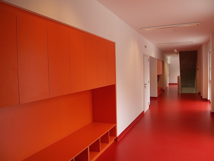 Cette architecture est destinée avant tout aux enfants qui passent 4 ½ jours par semaine dans ces espaces. Le système préfabriqué choisi a permis une certaine flexibilité leur offrant des espaces fonctionnels de qualité, de la lumière et de la couleur. L'enveloppe extérieure rend ce bâtiment singulier et personnalise "leur" école.