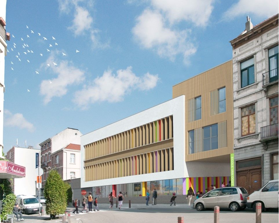 Le projet « Site Van Oost » fait partie intégrante d’un plan de développement durable pour la commune de Schaerbeek (Bruxelles), qui vise à revaloriser son riche patrimoine architectural du XIXe siècle et à revitaliser la commune en l’équipant de services publics adaptés à son évolution démographique tout en élargissant l’offre de logements. Ce projet signé DDS & Partners Architects, lauréat du concours lancé pour la conception d’un développement à usage mixte, comprend une école francophone et une école néerlandophone, une salle de sport ainsi que onze appartements. Rendez-vous à la rentrée scolaire 2018.